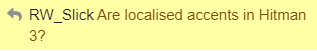 Actually there is every perfect reason why one would want accents in Hitman, than to dismiss it with “it’s just a video game”. One can infer that the most flagship part series has been the counterpoint for localised accents. And not everyone is going to want accents in Hitman, and yet, some do. Not everyone would care so much about immersion in a video game, and yet, some do. This has been the integral part of this thread to begin with.