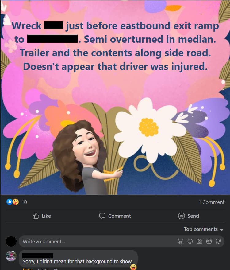 Being on FB - sometimes I see posts from people that must be using an app where they’ve got a cartoon(ish) version of themself, and some kind of background… Usually with a celebratory theme. Then they still use it… Or perhaps don’t turn it off or bother changing it… And have a serious or sad message above it. Example…