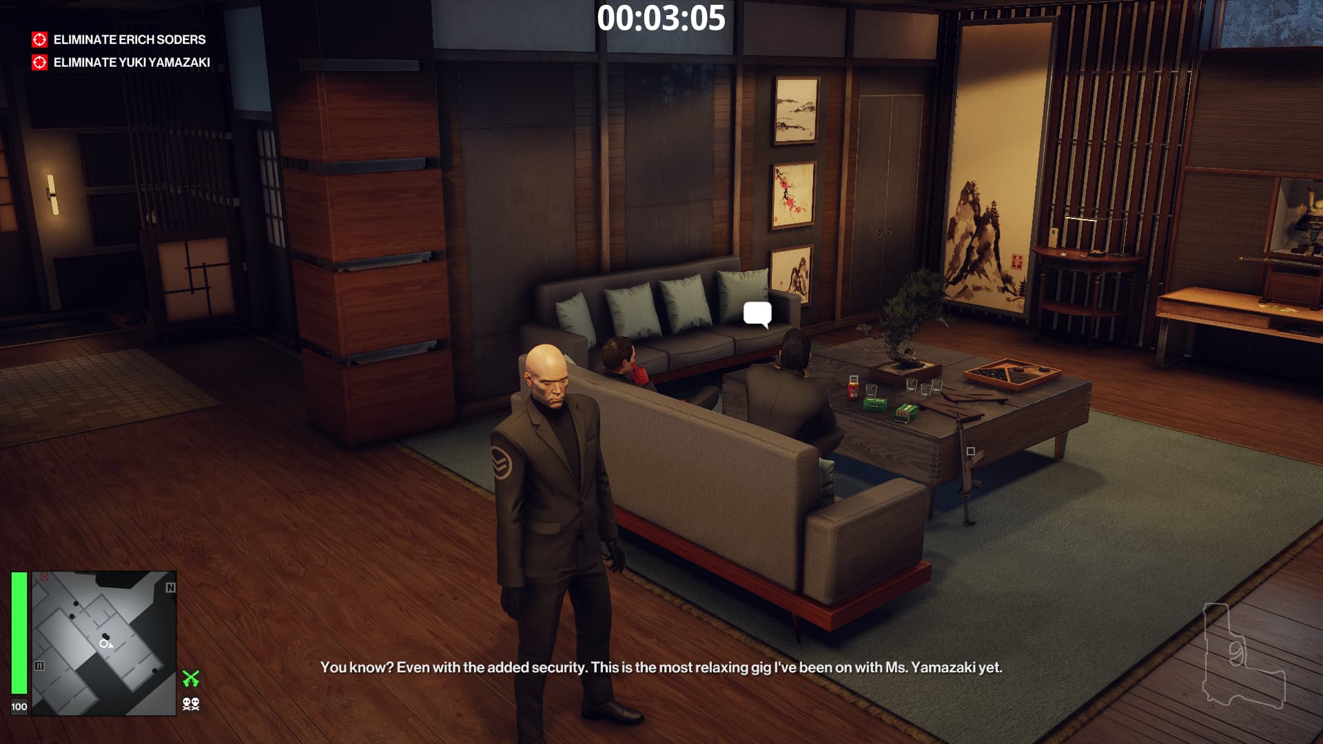 Several of the guards especially the pair in the cable car station and a pair in her suite talk about her as if they are unaware of her background as an actual member of the Yakuza and not simply a defense lawyer.