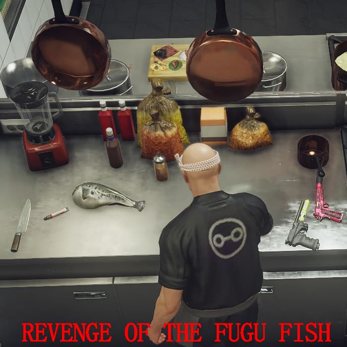 Contract Details: Kill 5 chefs in honor of the fugu fish by using methods of poison, drowning, and knifing.