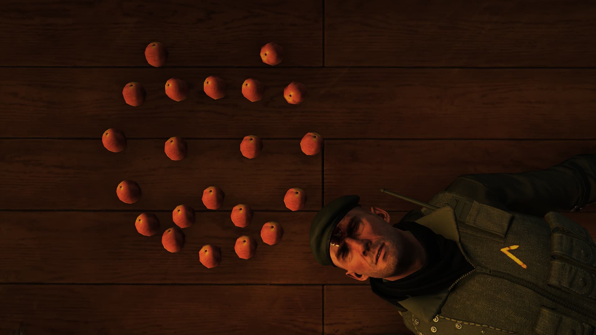 It’s the best thing I could come up with without risking a copyright violation… If I did go with a red suit, the contract likely would’ve been based in Bangkok, but since apricots (a fruit) are in Colorado, and the Guru suit should be available to almost all players (no excuses) it’s closest to an apricot color… Or yellow, but we don’t have a mostly yellow suit (yet).
