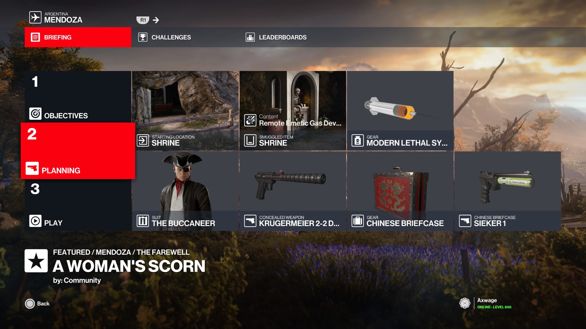 @HowToHitman_YT, I hope you are able to give it another look. When I was creating the contract I knew I wanted the timer to imply the urgency of the story. I had considered No Pacifications, Not Spotted, No Bodies and No Disguise. I try not go to with more than 3 complications. As I wanted the kills to be done in the suit, No Disguise was redundant. Plus with the grape field exit, if someone wants to take Flower or Vegasā disguise to exit, why punish them. I also had a feeling that the targets would have a lot of accidents, and removed the No Bodies. Not Spotted fit the narrative, so I kept it. As for the pacifications, I had it as a complication for my planned envy contract. But as I was developing this one, it really fit the narrative with discretion being needed for Valentinaās escape. I did flirt with the idea of having them instant-fail, to tie in the Wrath to the player, but I am not a fan of that and dropped it. I am looking forward to your play-through video.