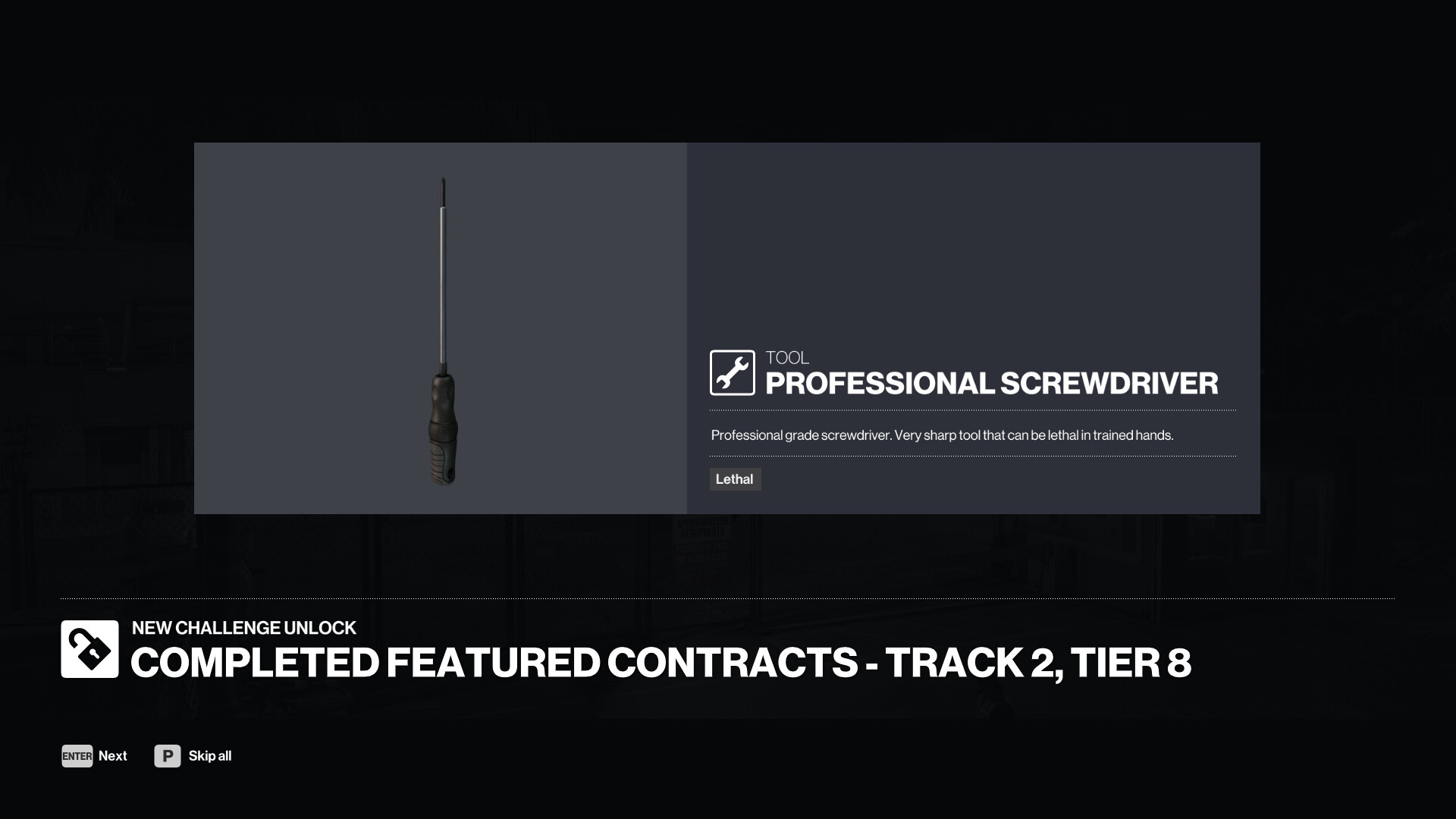 Speaking of the screwdriver, weāre supposed to have it now? I have done all H3 featured contracts and the challenge is at 66/70.