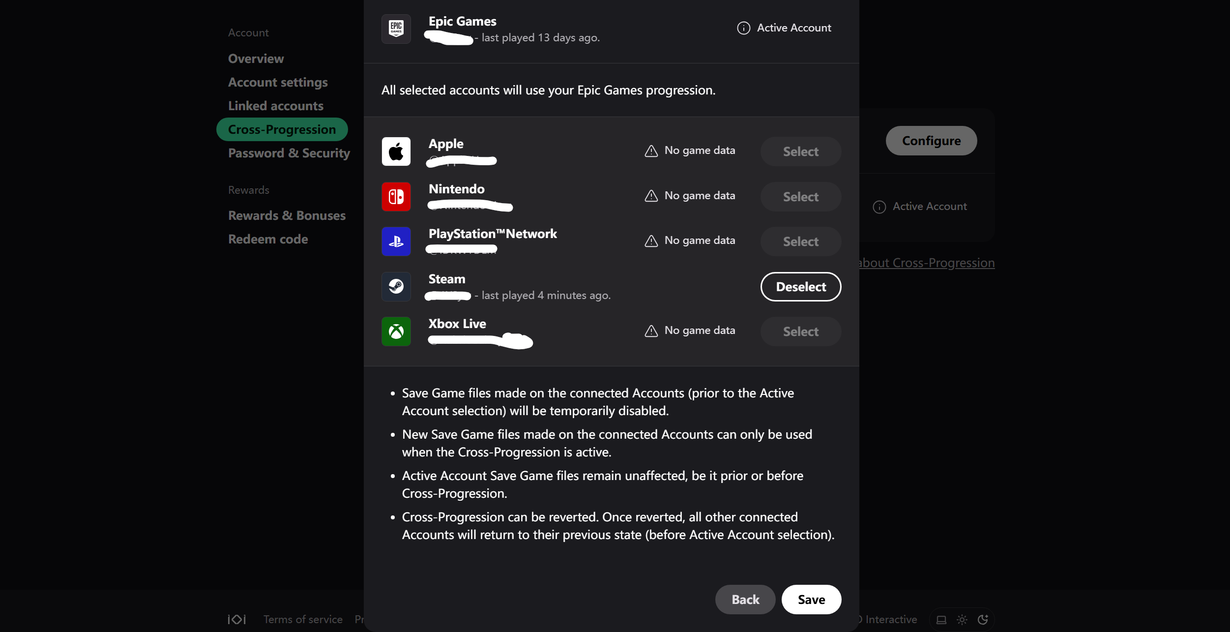 Did you complete the second screen where you had to select which platforms you wanted to enable the cross-progression on?