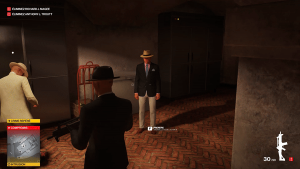 And done. Not exactly as I had always hoped, but taking out Troutt in the way I wanted while adhering to my Parameters of Perfection turned out to be impossible, so I had to find another way, and find it I did. With patience and using the method of climbing to the upper room with a security console in the town hall, I used the two pistols that you can get in the apartment rooms to lure the two patrolling guards up here out of the room and dropped the chandelier on McGee, ducking behind cover immediately before the remaining guard could spot me when investigating.
