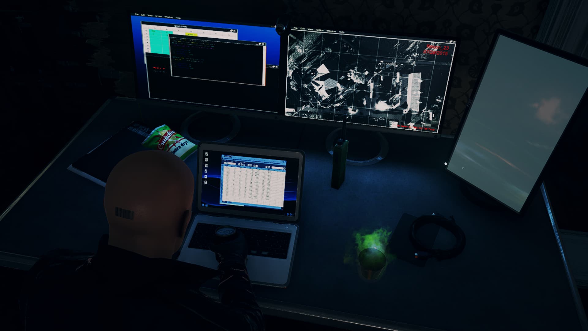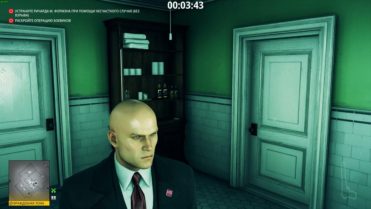 Really got freaked out by a hacker suddenly going in my direction when I was going for the laptop. During my training attempts, in which I was just standing by the vomiting guy and the laptop for 5 seconds without actually interacting, I hesitated less, so could “hack” it and run away faster. Good thing I at least figured out it’s way safer to hack the laptop after killing the target rather than doing it during the alarm as I originally planned.