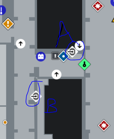 Is that the one I’ve marked “A” or “B”? For “A” I think it would make sense as someone would be a lot more likely to see you if it was still open. Unlike the main mission, it also leads to mostly civilian areas so it’s a bit redundant - interesting change though.