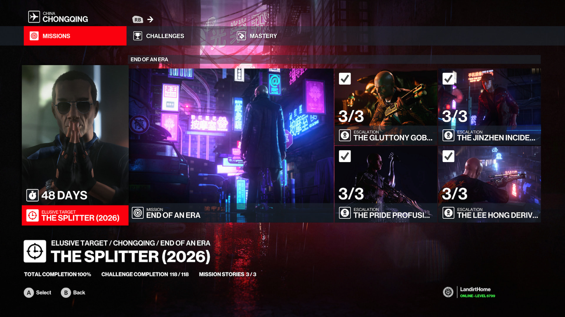 Killed him and his clones - again! What I’ve found odd was that at the beginning of the mission the challenge “The Iteration Effect” popped up for playing the Splitter. And at the end I got rewarded with the Splitter Suit. Was this always like that? Will I get this reward every time I play the Splitter on reruns? I’m sure I’ve already had this disguise as I’ve killed him before: