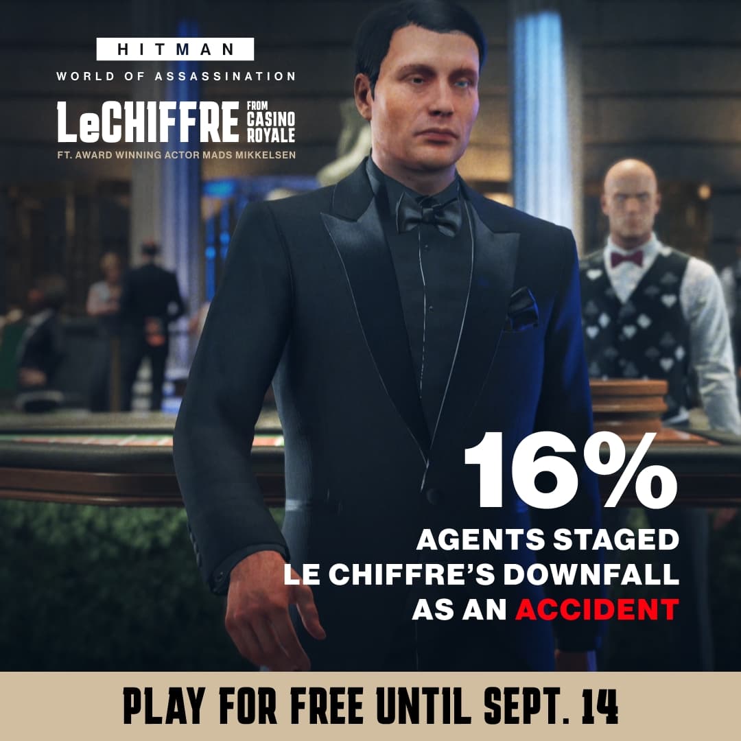 If you ever try this approach (better not), keep in mind you’ve got about a minute after whacking Le Chiffre before his body gets found. It takes ~40s to get to the basement exit.