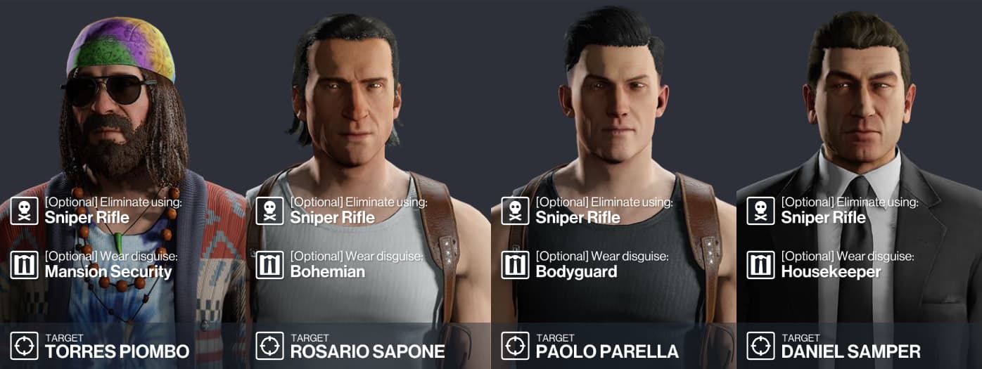 {"Author":"Urben","MissionId":"3984dfed-edd5-4697-a1a2-1c3a77f580f5","MissionName":"LOCATION_COASTALTOWN","TimeLimit":660,"ExitId":"51335db0-be3e-4a30-9212-55d4e39b23a2","CreateFromParamsJ":{"creationData":{"Title":"Round Windows","Description":"Usually, windows are for looking out of them. Today though, you will look into them. \rBut from where? That is your choice.\rWhat is certain is that the round windows we are talking about here include those of your scope.\r\rBy Urben","Targets":[{"Weapon":{"RepositoryId":"f301f605-007c-4fe1-aa99-a8cd2cae033f","KillMethodBroad":"sniperrifle","KillMethodStrict":"","RequiredKillMethodType":2,"RequiredKillMethod":"sniperrifle"},"Outfit":{"RepositoryId":"fd56a934-f402-4b52-bdca-8bbc737400ff","Required":true,"IsHitmanSuit":false},"RepositoryId":"729aa28f-5856-449a-9e41-3e4fedc5c38f","Selected":true},{"Weapon":{"RepositoryId":"f301f605-007c-4fe1-aa99-a8cd2cae033f","KillMethodBroad":"sniperrifle","KillMethodStrict":"","RequiredKillMethodType":2,"RequiredKillMethod":"sniperrifle"},"Outfit":{"RepositoryId":"61b8f96e-4986-4f0a-ab95-dcdc69f51580","Required":true,"IsHitmanSuit":false},"RepositoryId":"50481272-516e-4cef-a1e8-0843b059b0d2","Selected":true},{"Weapon":{"RepositoryId":"f301f605-007c-4fe1-aa99-a8cd2cae033f","KillMethodBroad":"sniperrifle","KillMethodStrict":"","RequiredKillMethodType":2,"RequiredKillMethod":"sniperrifle"},"Outfit":{"RepositoryId":"bf9629e0-f25c-4e71-9561-4a99a93a43e8","Required":true,"IsHitmanSuit":false},"RepositoryId":"b68a6555-4ecd-4164-9a48-ad2066d23f23","Selected":true},{"Weapon":{"RepositoryId":"f301f605-007c-4fe1-aa99-a8cd2cae033f","KillMethodBroad":"sniperrifle","KillMethodStrict":"","RequiredKillMethodType":2,"RequiredKillMethod":"sniperrifle"},"Outfit":{"RepositoryId":"a6c81663-684d-4506-abc0-65b35c4d8b63","Required":true,"IsHitmanSuit":false},"RepositoryId":"c69d9281-28cd-4aeb-a4f4-ab1e8b25c823","Selected":true}],"ContractConditionIds":[]}}}