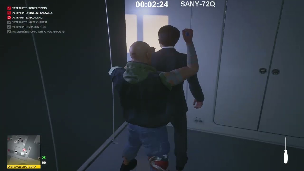 As usual, no pacification needed to avoid agent to get the weapons & disguises by knocking NPCs which will defeat the purpose of Treasure Hunt.