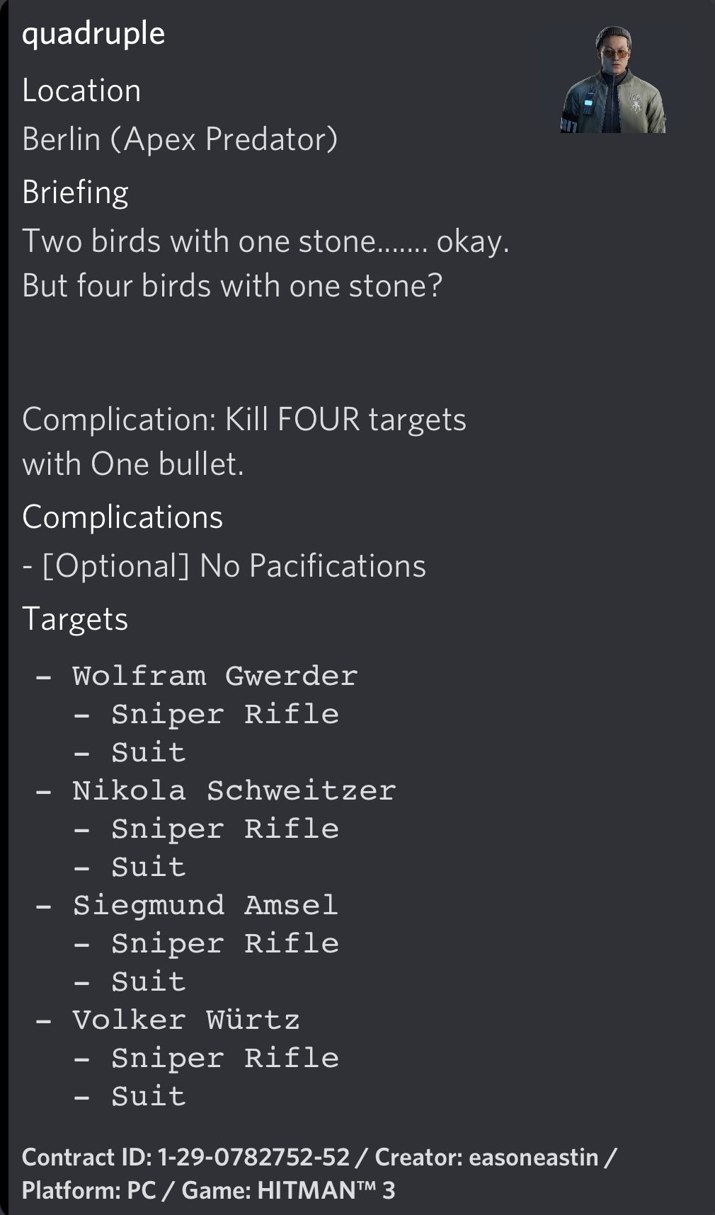 If you’re recreating this @TheContractor the lawyer is the guy sitting down and smoking near Agent Swan’s route.