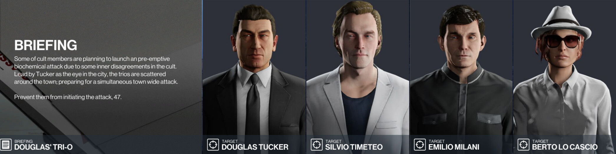 {"Author":null,"MissionId":"cc91b5a2-aa39-4dbd-b117-c972b5fc266b","MissionName":"LOCATION_GOLDEN_GECKO","TimeLimit":240,"ExitId":"07a71270-12ce-43a6-bd89-ff46cd196c6b","CreateFromParamsJ":{"creationData":{"Title":"Going Loud: Noise Complaint","Description":"Good evening, 47.\r\rDubai marks the next phase in your evaluation. A follow-up, if you will.\r\rThe last assignment *Contract ID 1-01-9504607-96* proved you could go loud and still leave no trace. But that was theory. Controlled space. Predictable elements.\r\rNot this time.\r\rYour targets today aren’t threats. They’ve been selected to simulate noise, tension, and unpredictability. What matters is your ability to act openly, decisively, and vanish before the dust settles.\r\rNo suppressor. No disguise. Just a pistol, a city of glass, and your usual disappearing act.\r\rLet’s see how well you’ve retained the lesson.\r\rGood luck 47","Targets":[{"Weapon":{"RepositoryId":"15291f69-88d0-4a8f-b31b-71605ba5ff38","KillMethodBroad":"pistol","KillMethodStrict":"","RequiredKillMethodType":3,"RequiredKillMethod":"pistol"},"Outfit":{"RepositoryId":"ad942f93-f8da-48d0-9f02-696f062329cd","Required":true,"IsHitmanSuit":true},"RepositoryId":"fa0d8f9f-86a4-4977-9106-c8fd7a62bbf6","Selected":true},{"Weapon":{"RepositoryId":"15291f69-88d0-4a8f-b31b-71605ba5ff38","KillMethodBroad":"pistol","KillMethodStrict":"","RequiredKillMethodType":3,"RequiredKillMethod":"pistol"},"Outfit":{"RepositoryId":"ad942f93-f8da-48d0-9f02-696f062329cd","Required":true,"IsHitmanSuit":true},"RepositoryId":"36844fbc-e06a-478e-a5ae-5d245775f9a8","Selected":true},{"Weapon":{"RepositoryId":"15291f69-88d0-4a8f-b31b-71605ba5ff38","KillMethodBroad":"pistol","KillMethodStrict":"","RequiredKillMethodType":3,"RequiredKillMethod":"pistol"},"Outfit":{"RepositoryId":"ad942f93-f8da-48d0-9f02-696f062329cd","Required":true,"IsHitmanSuit":true},"RepositoryId":"7d28ed81-2b13-4a8f-8276-0216c5e8058d","Selected":true}],"ContractConditionIds":["008d2eb9-c1c8-44e0-a636-ccca63629f3c","95690829-7da4-4225-a087-08918cccf120"],"ContractId":"1523e22b-a6a0-4aa9-b2d4-ecfc5459aef8","ContractPublicId":"127583950696"}}}