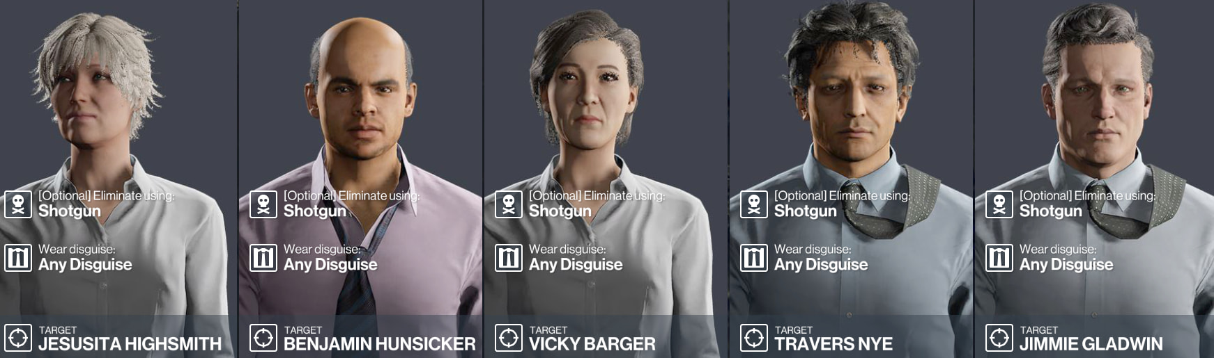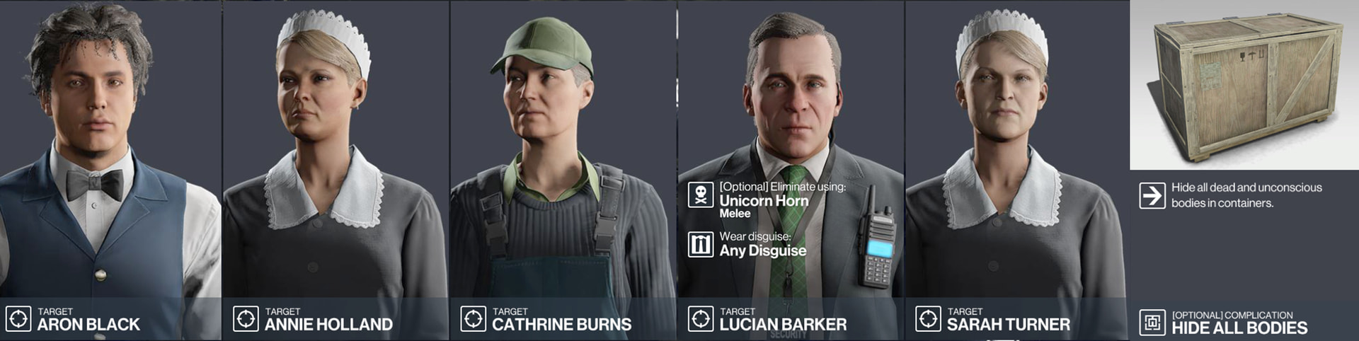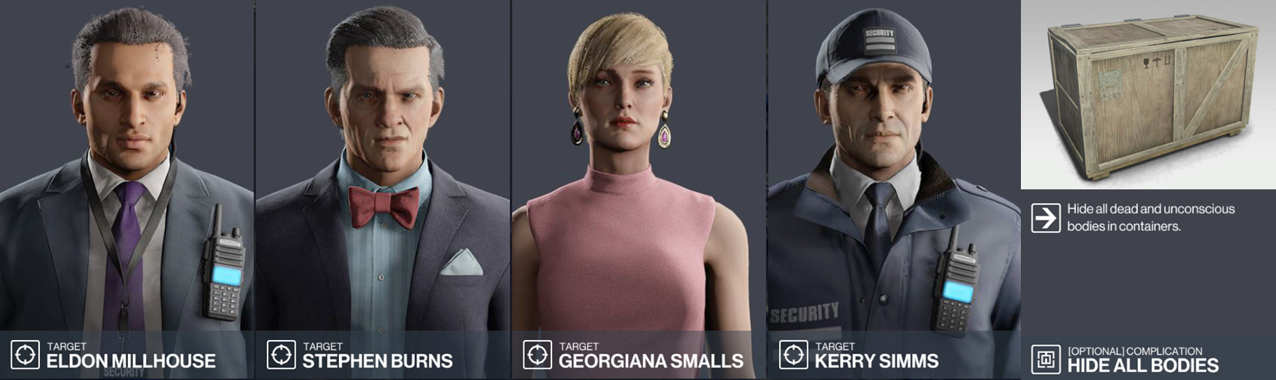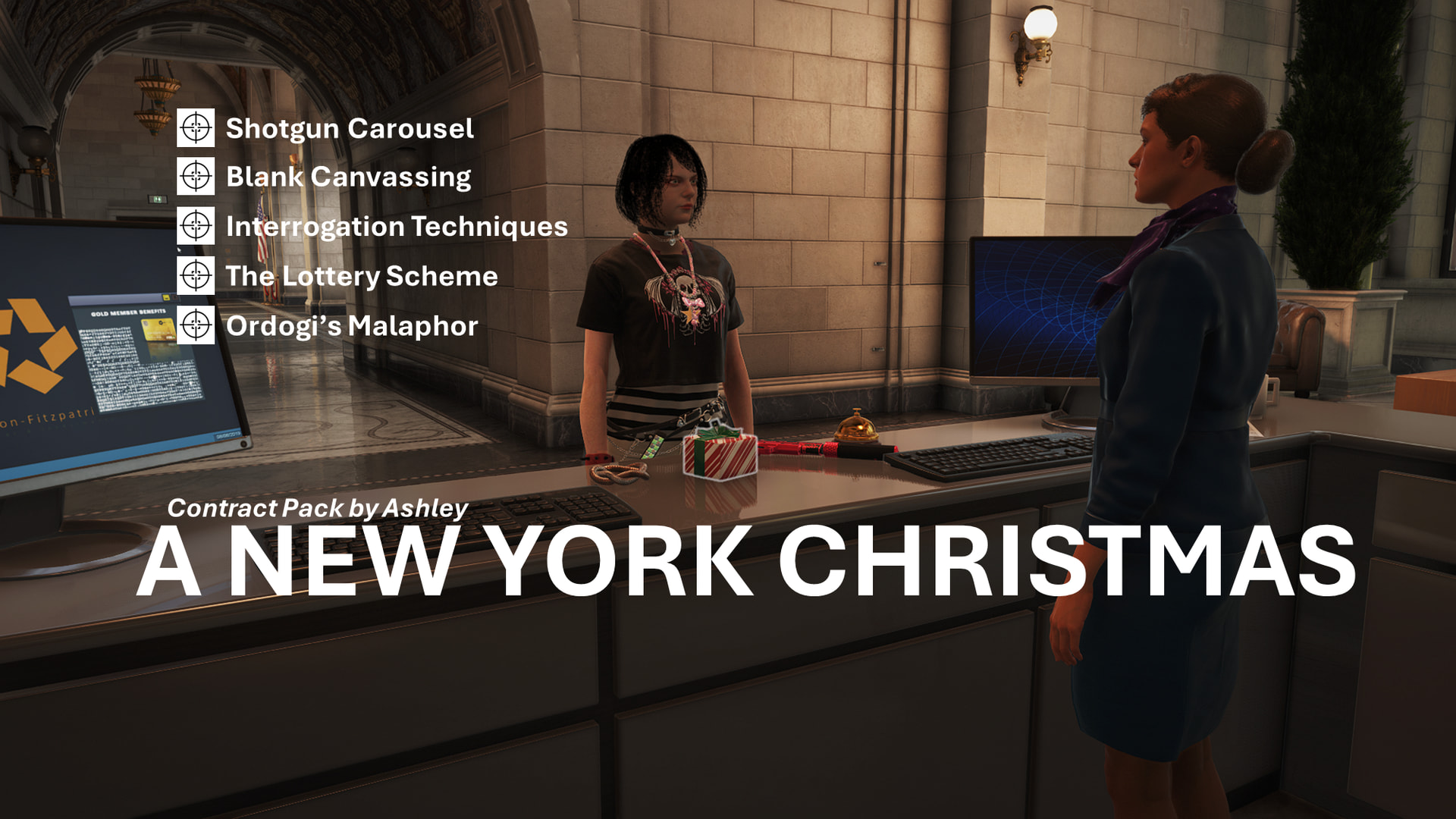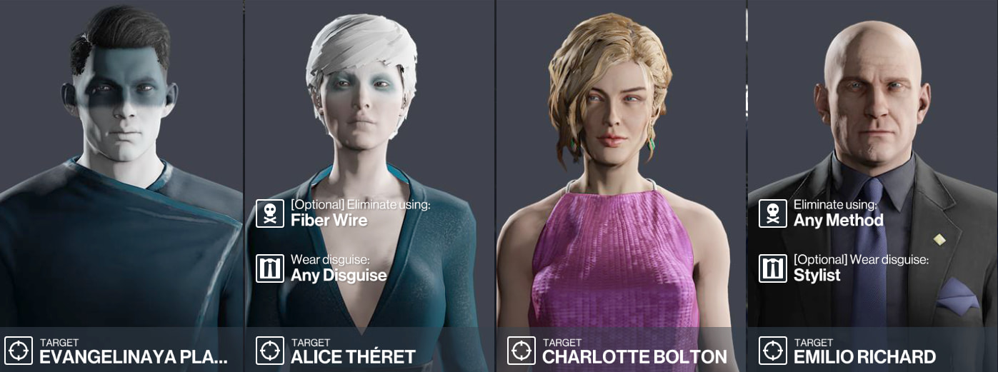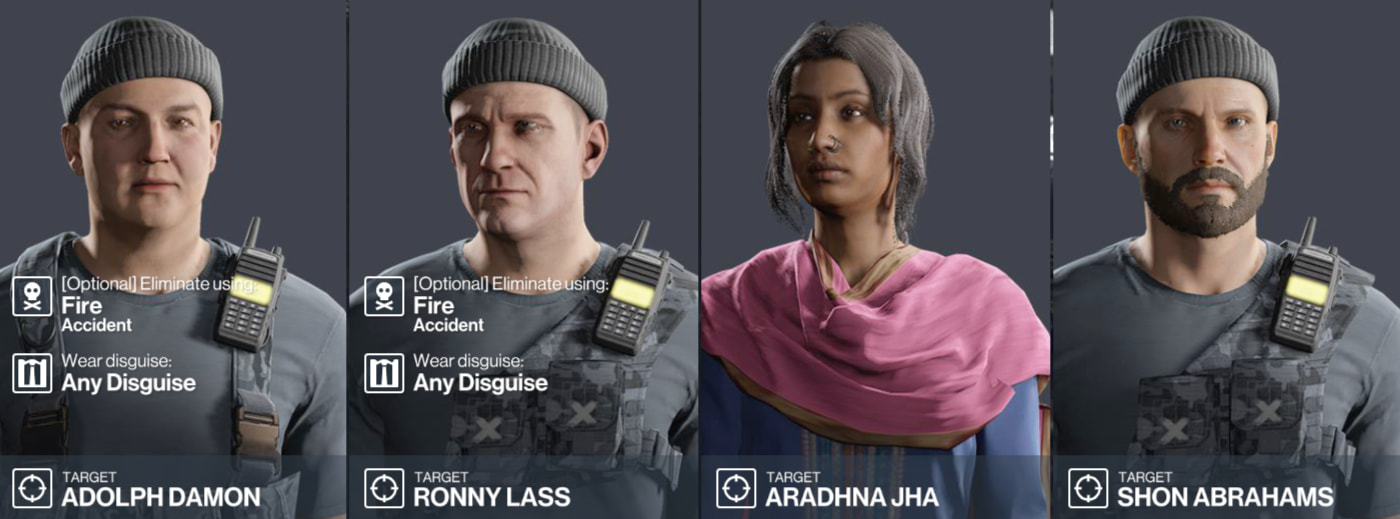 Story contract based on three people who’s attempting to use their mishandled earnings to garner others into a lottery scam. Full briefing is on HITMAN itself, but I wouldn’t be opposed to making some of these targets one-off with a full story/briefing! Wanted to sneak one of these in since story contracts are my favorite.