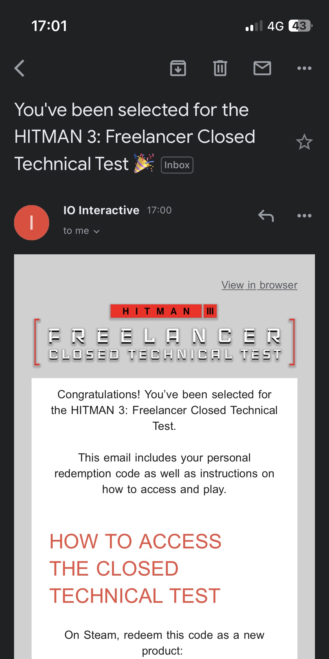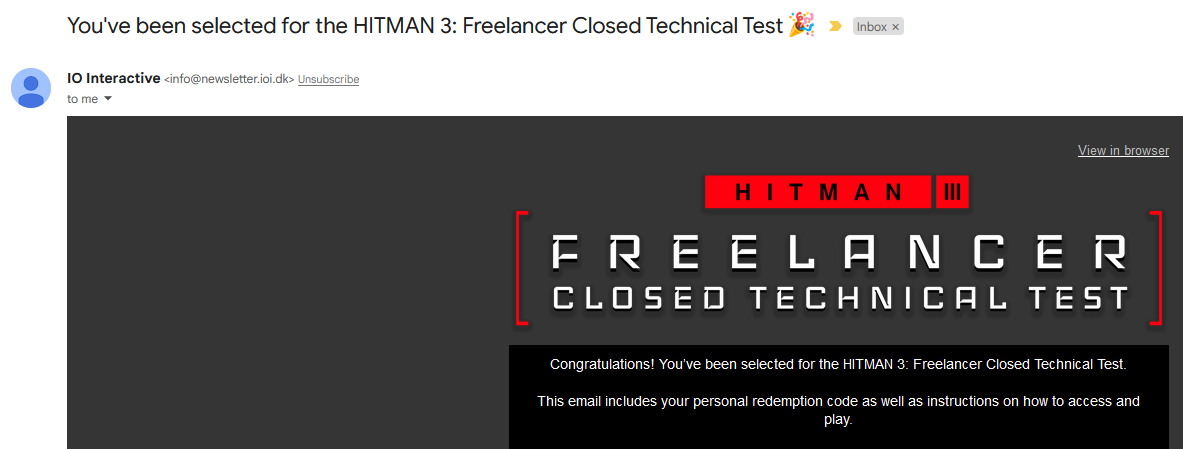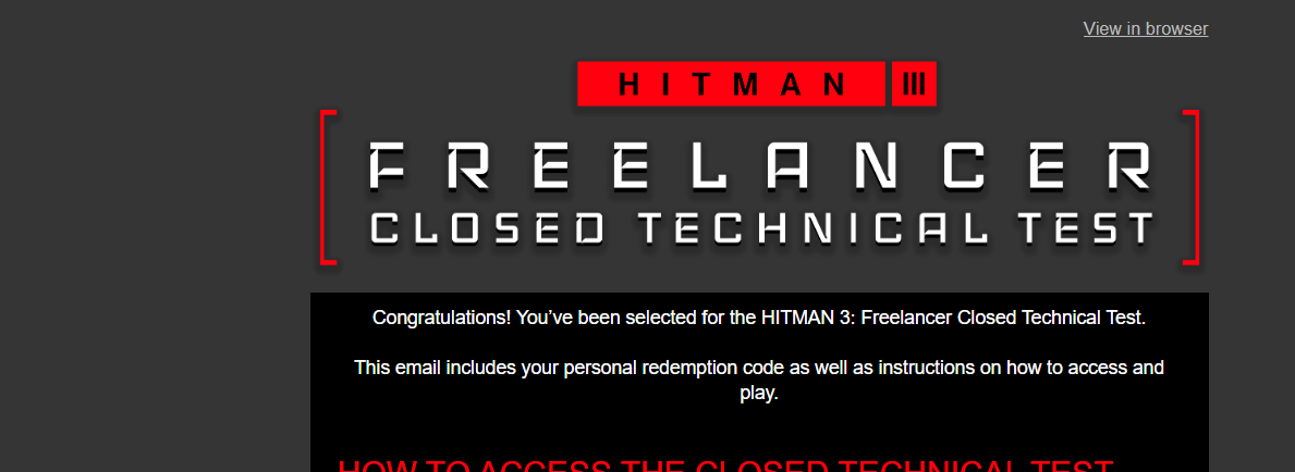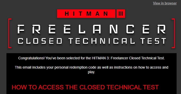 Thanks IOI, this should be a bit of fun. Just to confirm as well, I only own Hitman 3 on Epic Games, but got the invite and am currently downloading the Closed Technical Test.