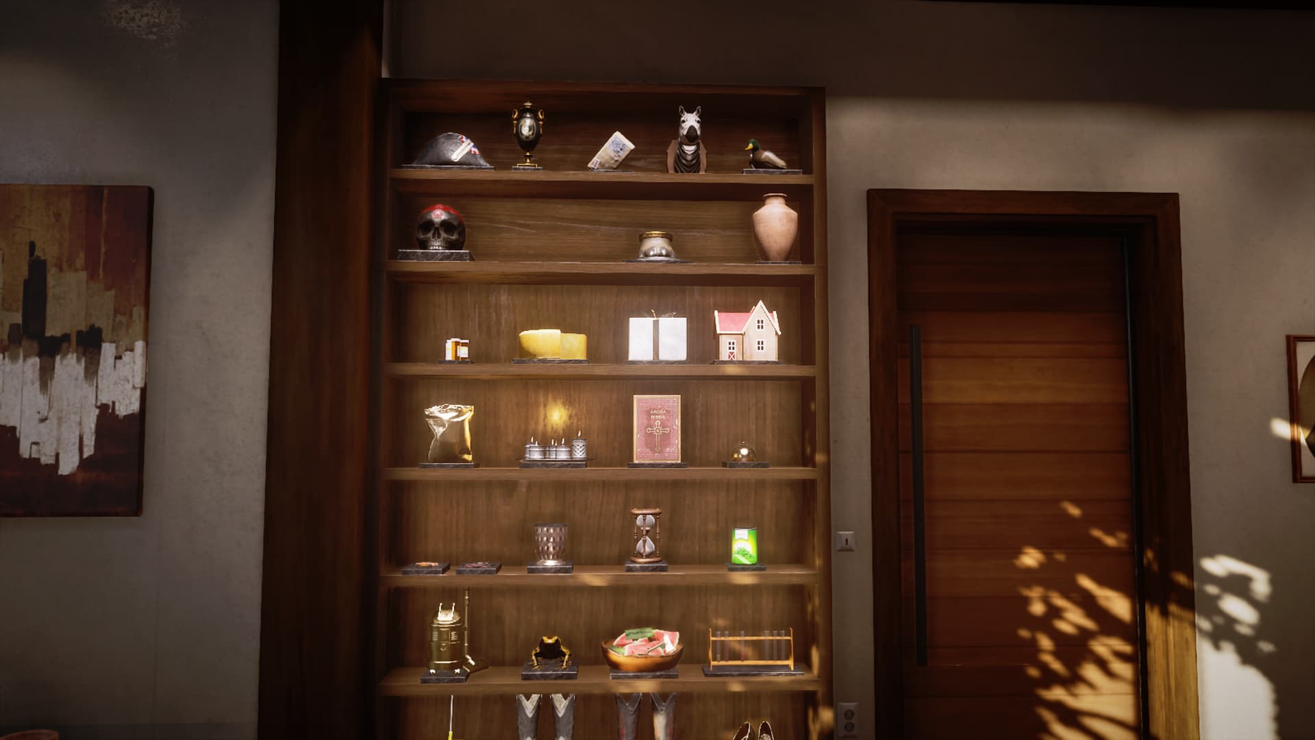 IIRC there is three empty spaces and one whole shelf on the upper part of the wall in one of the rooms.