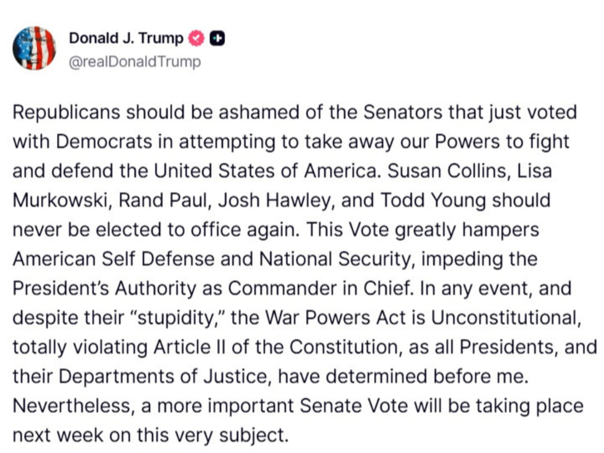 That said, White is still a Trump supporter who supports the atrocities in Minnesota, so screw him, goes without saying I hope Brandon Presley or another Democrat wins. And speaking of Trump, this is him making enemies in his latest dementia ramble: