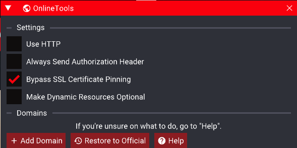 Cool, that seemed to have worked. I needed to enable the ‘Online tools’ mod and then tick ‘Bypass SSL Certificate Pinning’