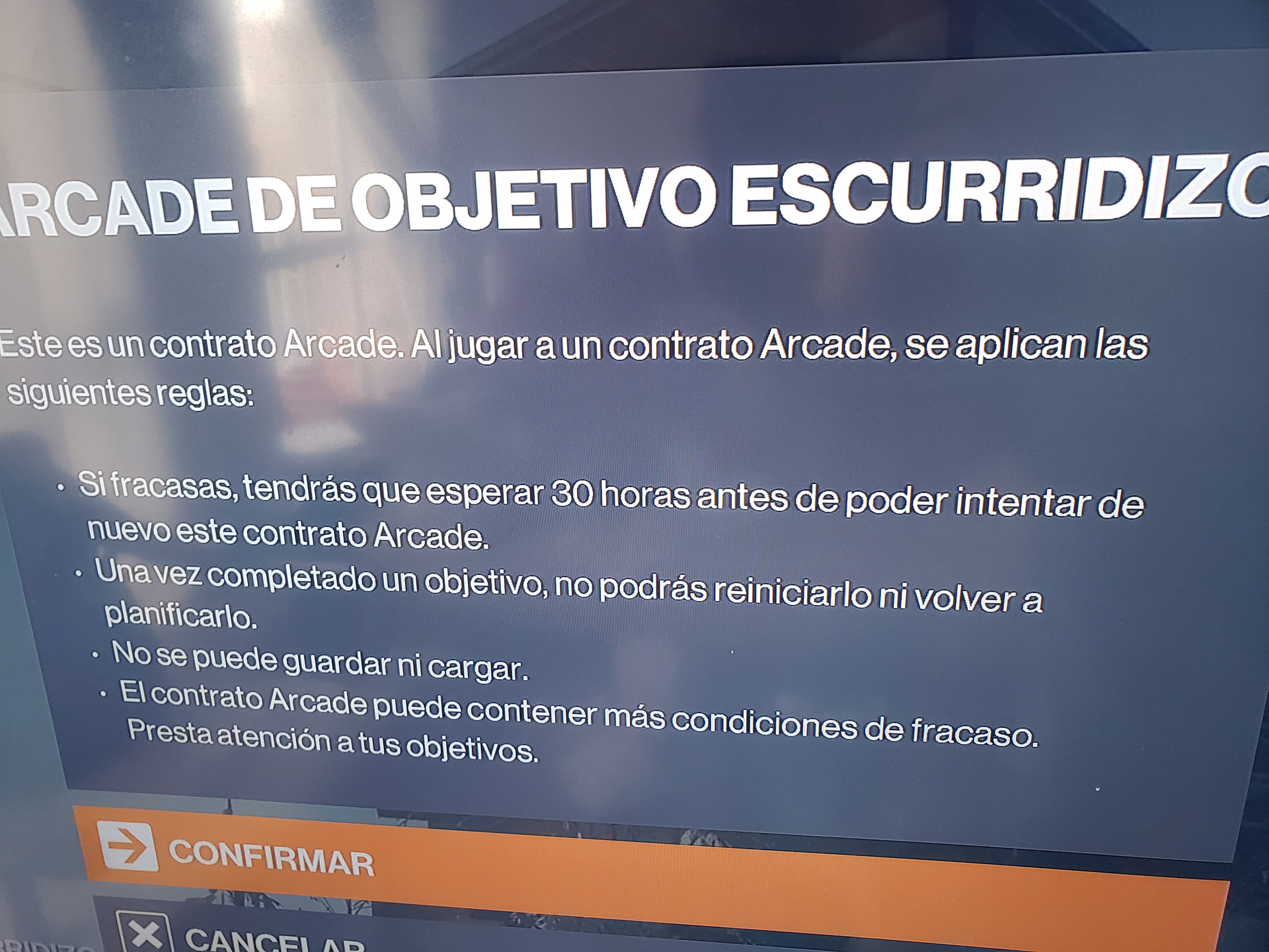 In the Spanish localization, when starting an Arcade contract, the game tells you the penalty for failing is 30 hours