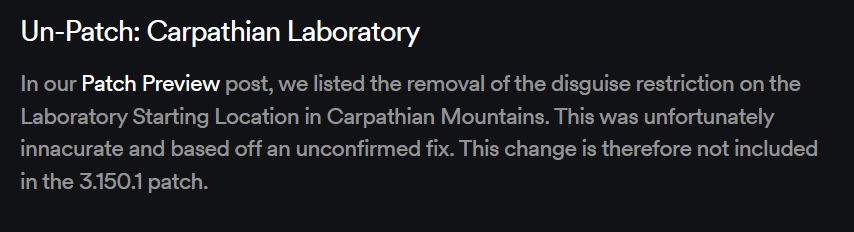 3 years ago, the may patch preview of 2023 promised the ability to wear suits on the Carpathian Mountains map. @Codename-24 really wants this feature and asked for me to ask you @IOI_Artjoms to inquire about it. I’m pretty sure it would be a well loved feature and people will enjoy wearing the new suits on the train mission for the first time.