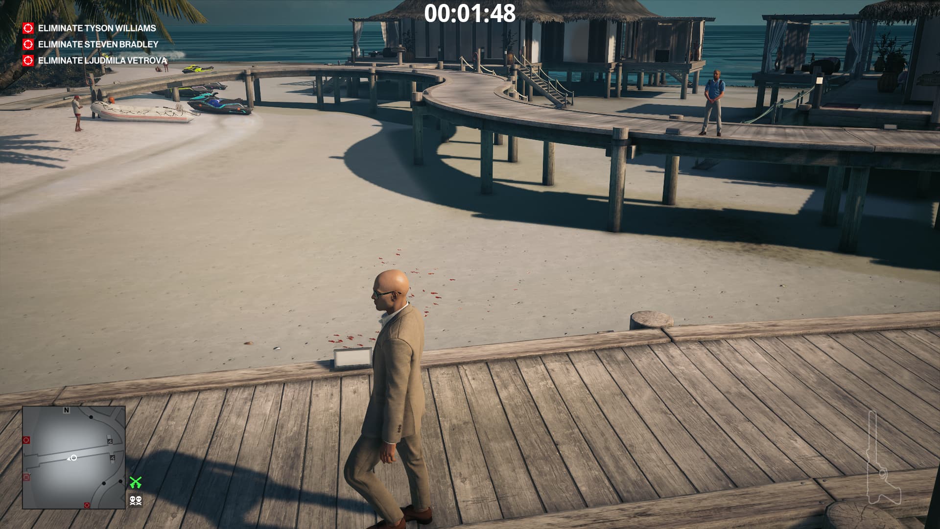 After nearly 2 years, this bug hasn’t been fixed yet. I tried yesterday by starting the level, let 47 sit on a bench and wait. After a while, the game crashed. Luckily I can play the level in H2. Since now H2 can’t be bought, new players on ps will not be able to enjoy this level.
