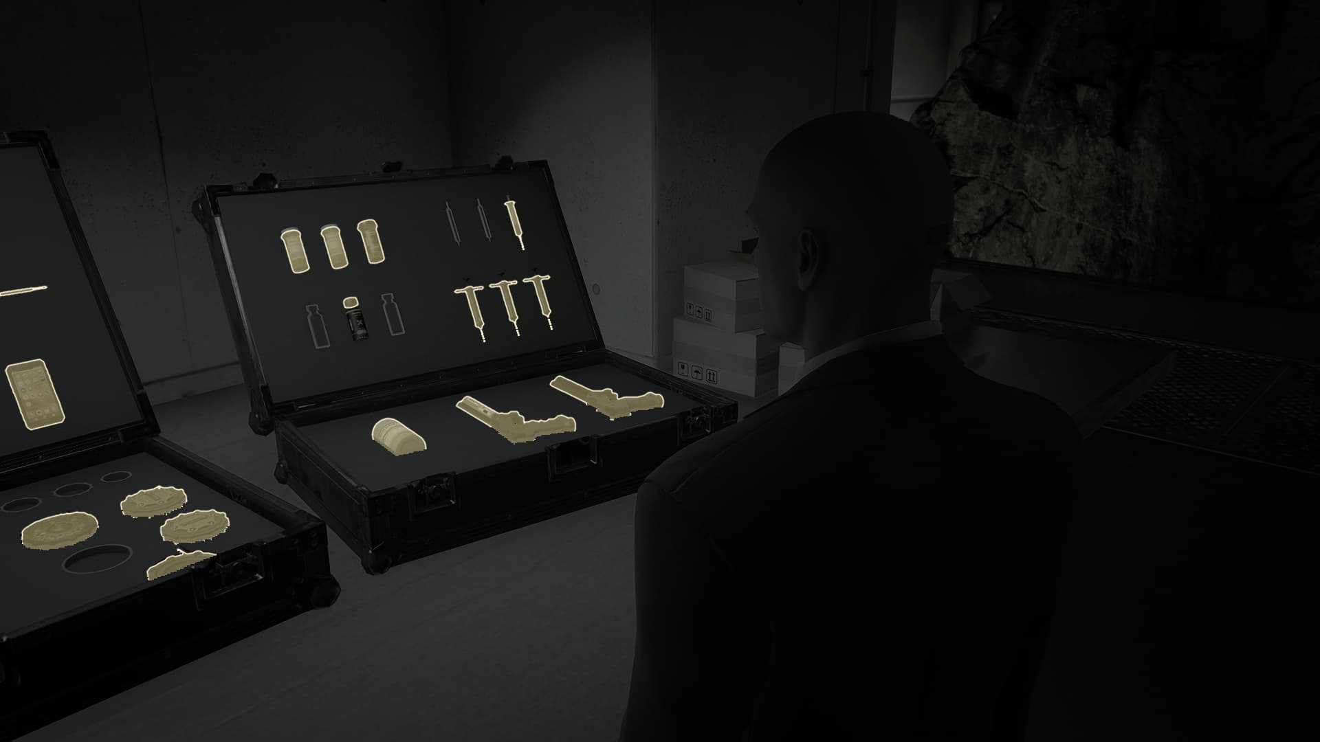 Description: The black sunglass lenses of Agent 47’s various outfits look like they don’t exist in the mirrors in the closet, however.