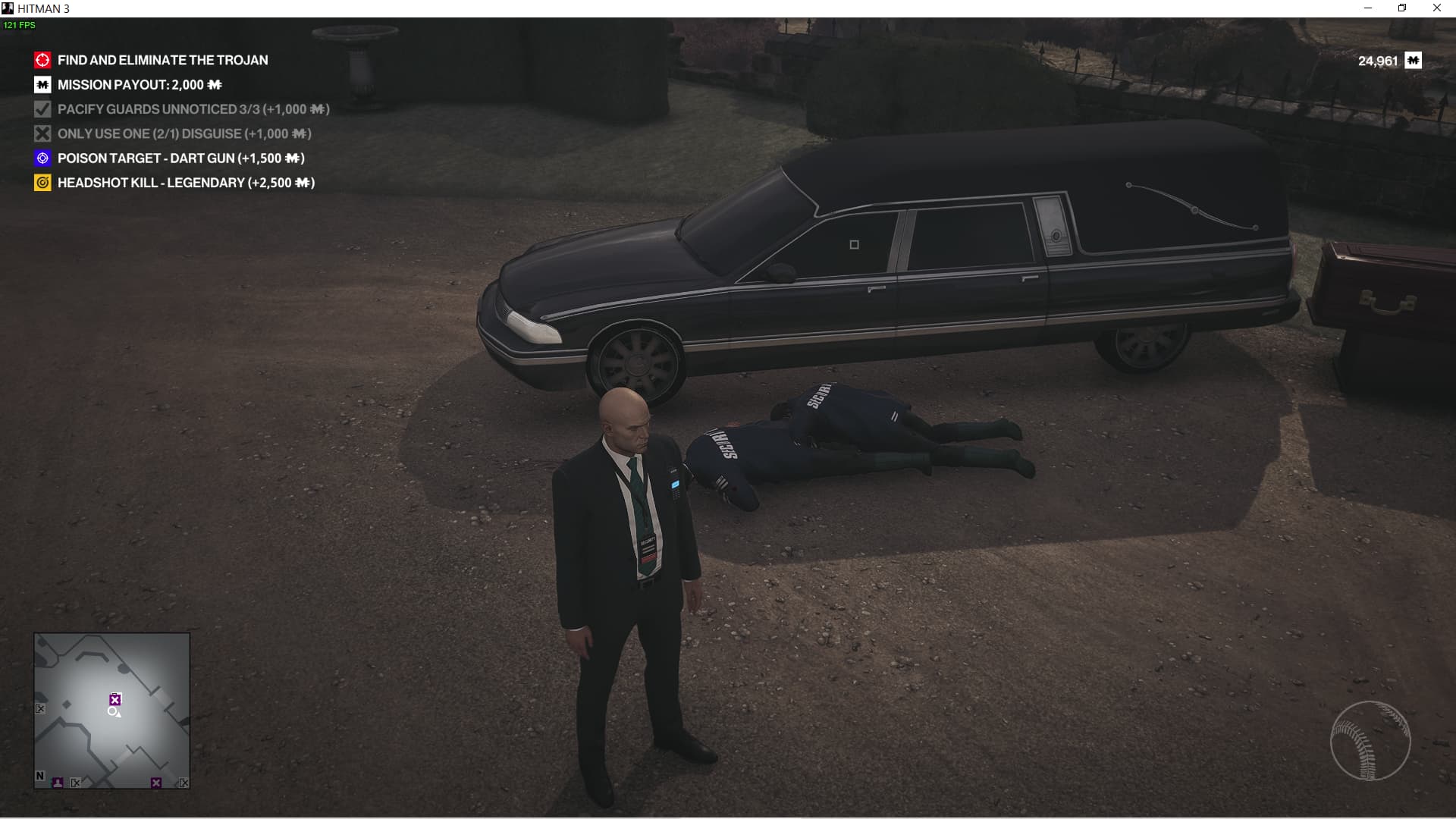 Objective - Hide Target Bodies, done by dumping three into the ocean and one into the crate.