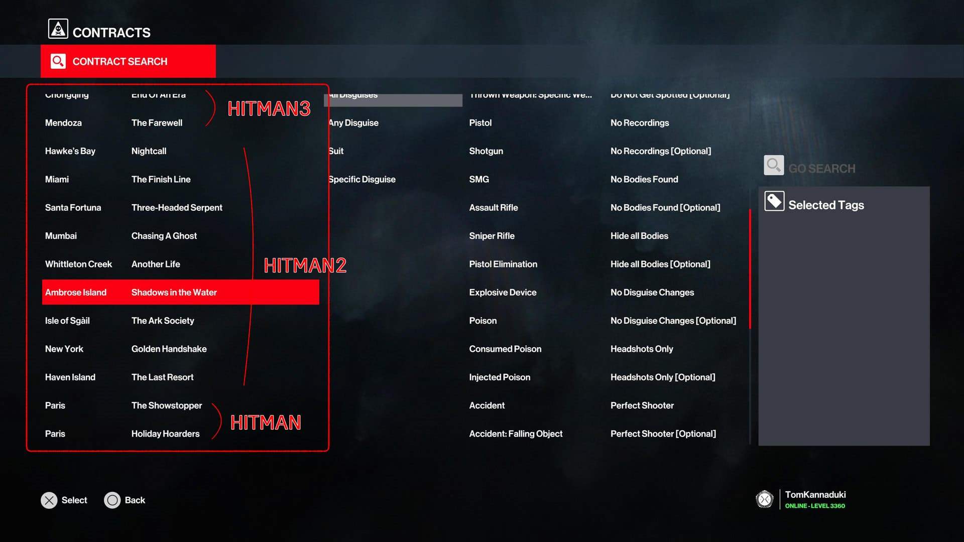 Also, this is not related to this report, but I am also concerned that the list of stages in the contract search is still HITMAN3, HITMAN2, and HITMAN from the top.