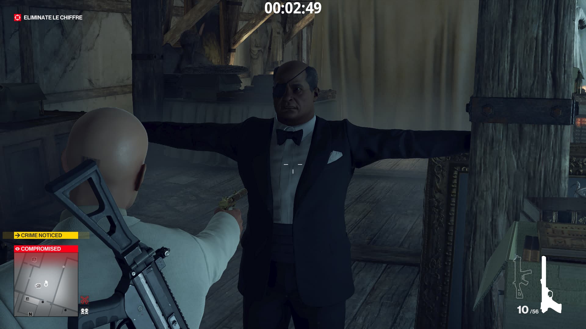 Description: I was instantly spotted when picking up a gun when a guard was also going to pick it up