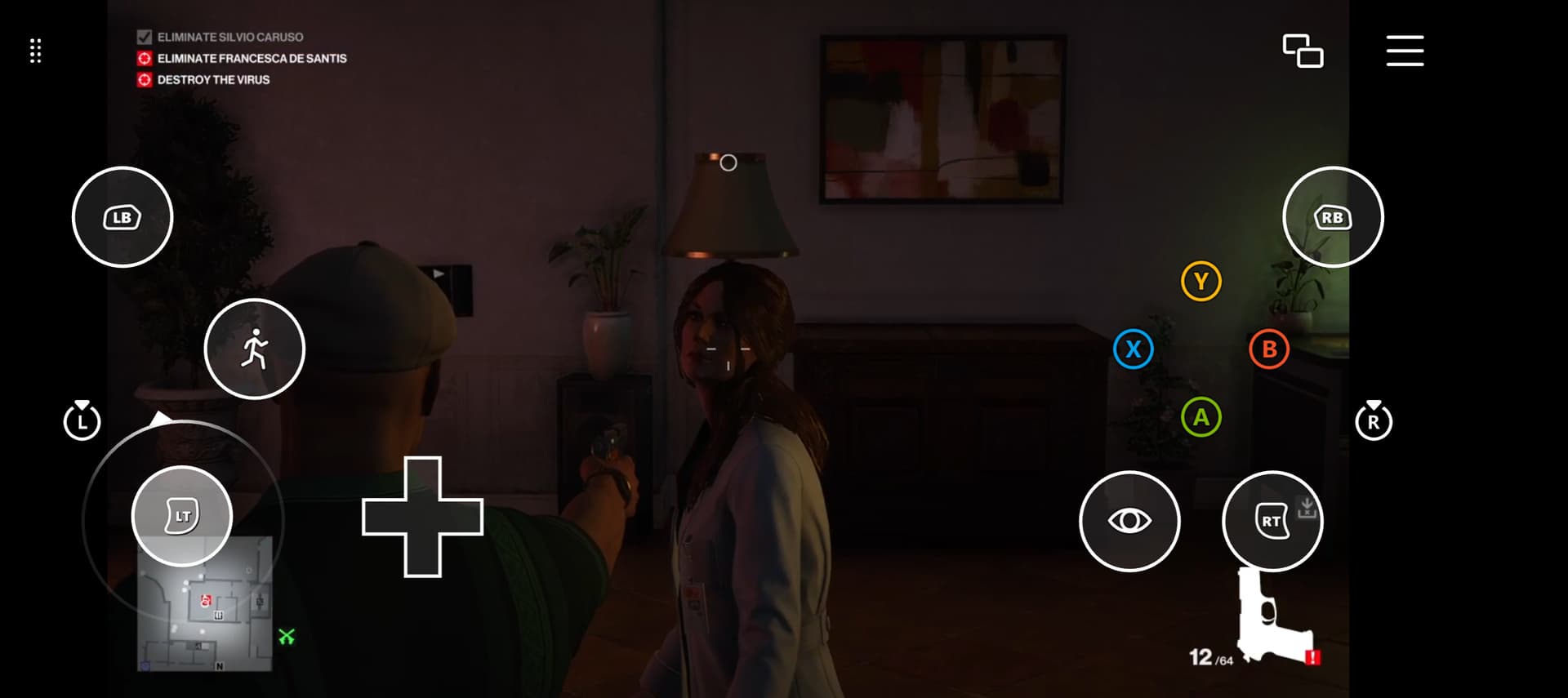 Francesca begins her emetic affected dialogue. In a few seconds however, she is overwhelmed by 47’s aura and becomes a mannequin.