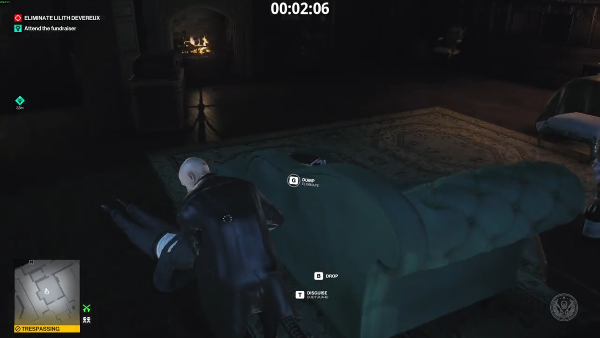 While the guards are in “search” mode, stealthily assassinate Mr. Ritter and hide his body in his bedroom.