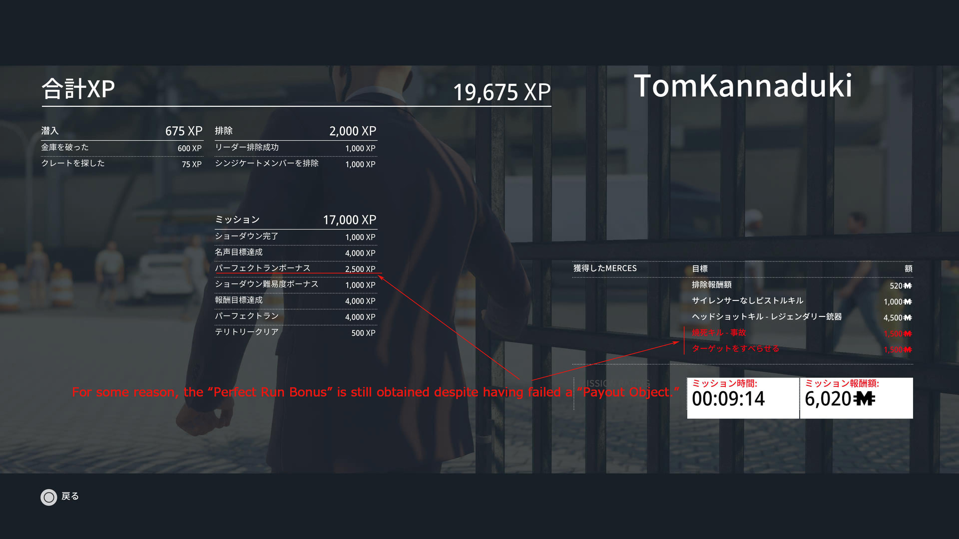 For some reason, the “Perfect Run Bonus” is still obtained even though there are failed “Payout Objects.”
