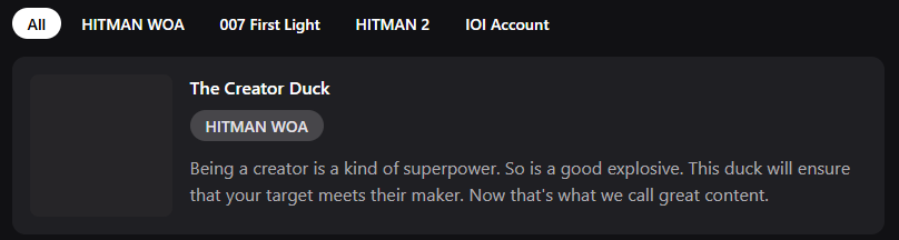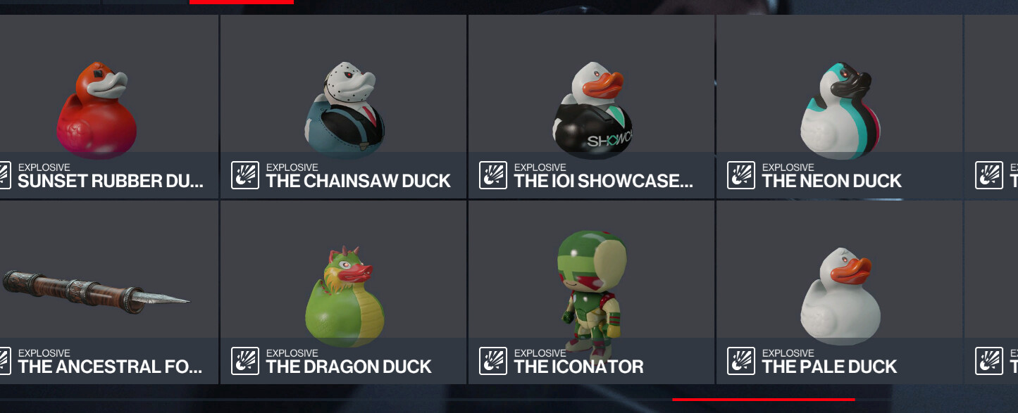 Unlike most remote explosives in the game which have their own detonator - The Creator Duck, The Dino Duck, The IOI Showcase Duck, The Neon Duck, and The Purple Streak Explosive Duck are all linked to the same detonator. So with a single press of a button, you can trigger multiple explosions.