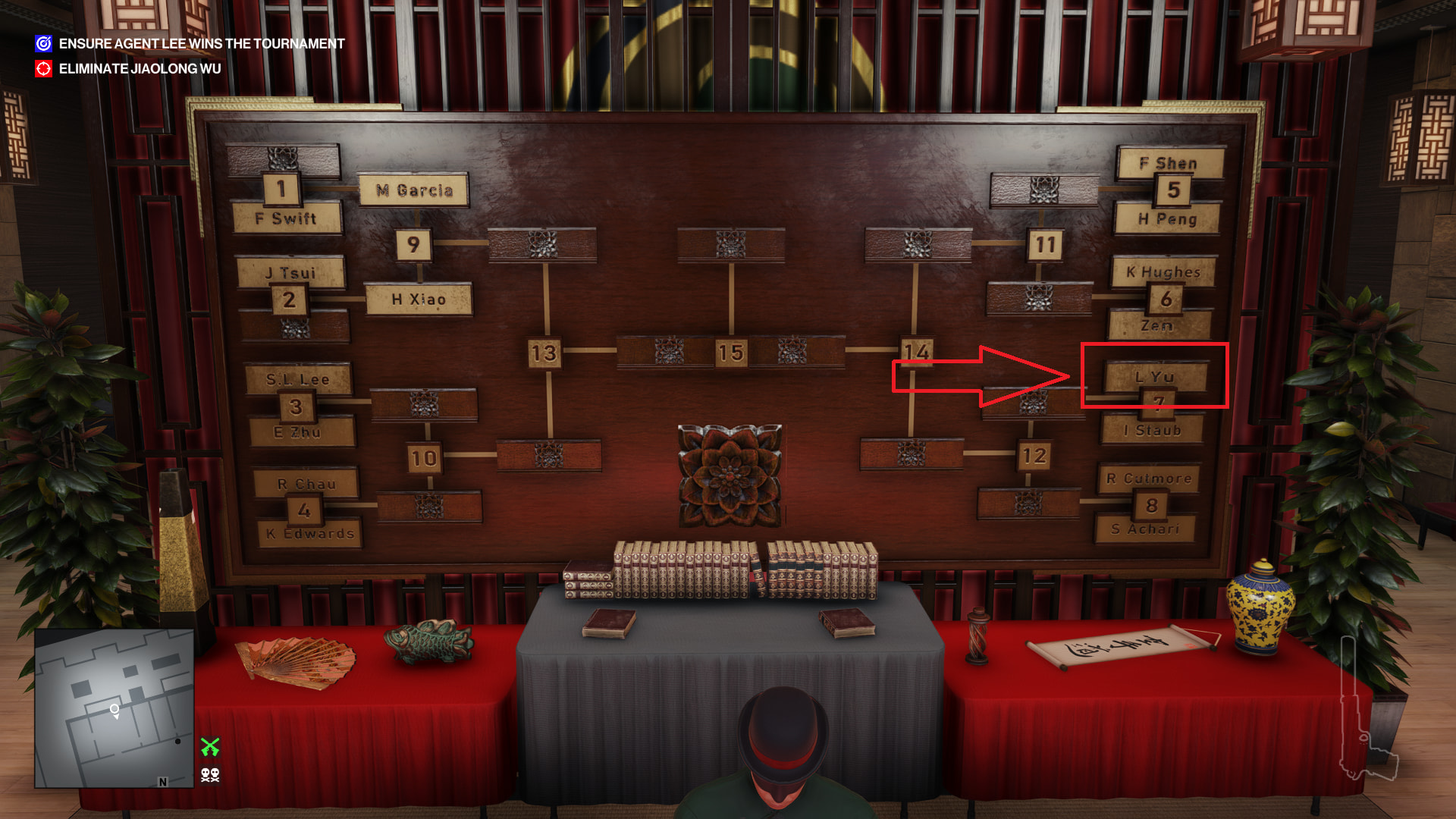 In the matchup board, which lists competitors by the first letter of their first name and then their last name, incorrectly lists Yu Lei as “L Yu”. Which implies her name is Lei Yu, but thats not what the dialogue that references her as.