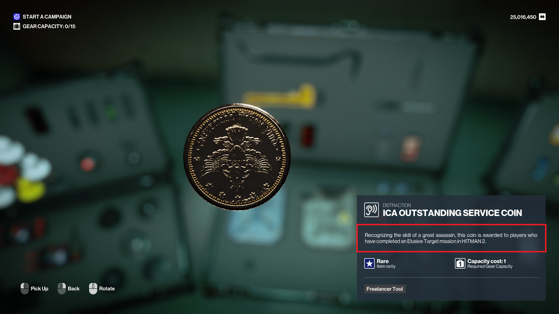 The ICA Outstanding Service Coin in the Freelancer Tools still hasn’t had its item description updated. It still references it being an Elusive Target reward from HITMAN 2, even though these were never given out to players.