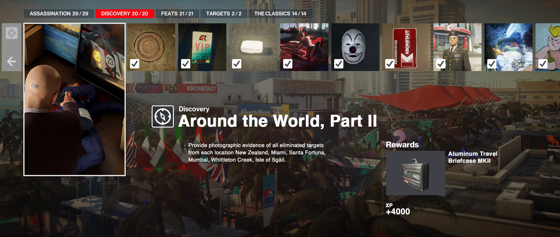 Provide photographic evidence of all eliminated targets from each location New Zealand, Miami, Santa Fortuna, Mumbai, Whittleton Creek, Isle of Sgàil.