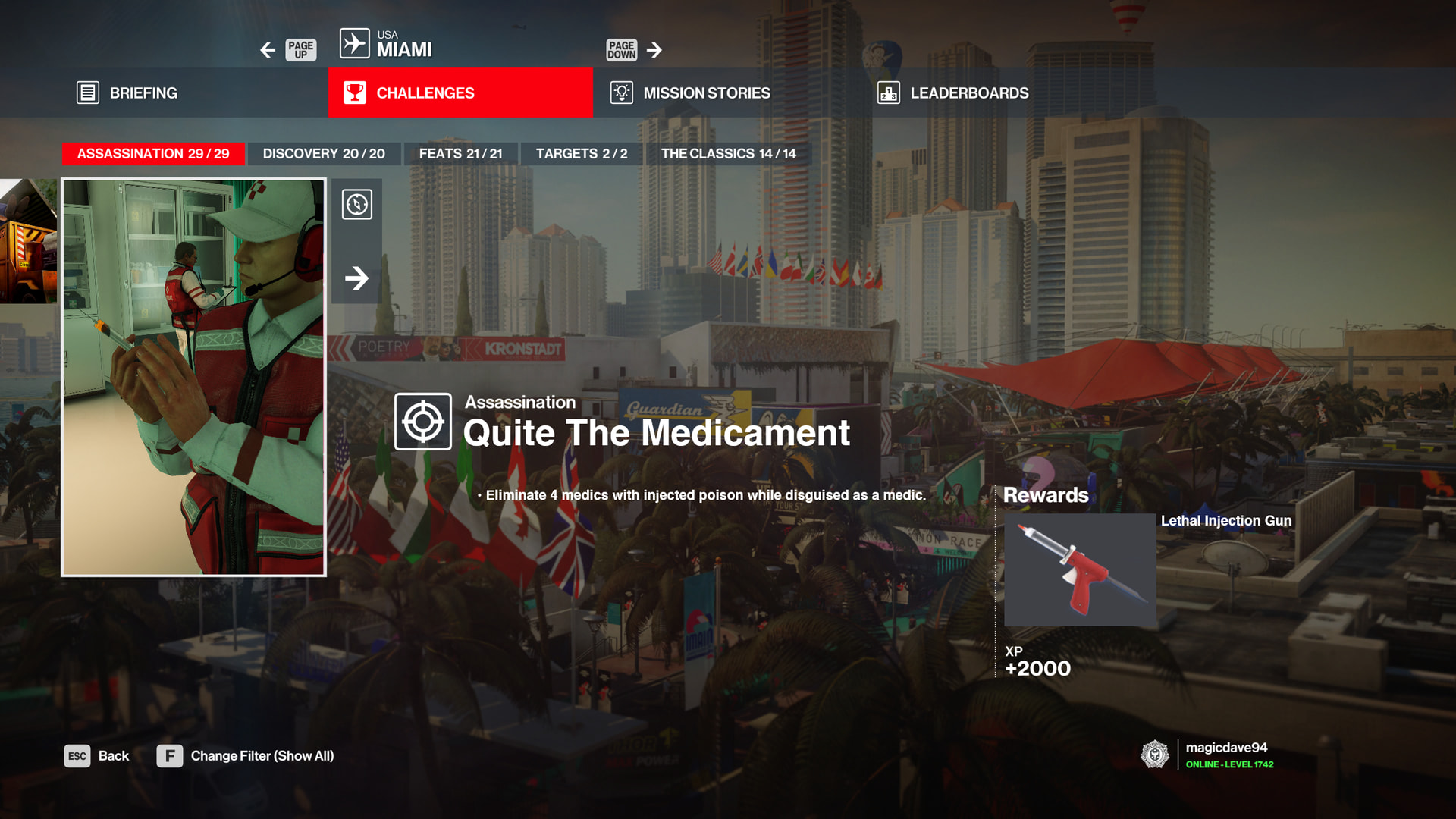 • Eliminate 4 medics with injected poison while disguised as a medic.
