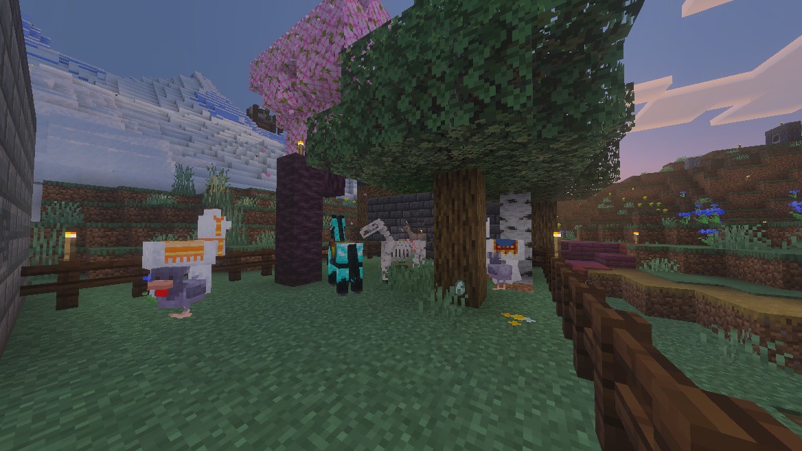 we could have stalls where we put things we have an abundance of, to help people in other biomes. I have snow for example, but Charlie might have terracotta. I’ve got dark oaks and spruce that others might not have. And if I do continue to demolish the mountain blocking my lodge’s view, there will be a pile of chests of dirt for those in dirtless biomes.