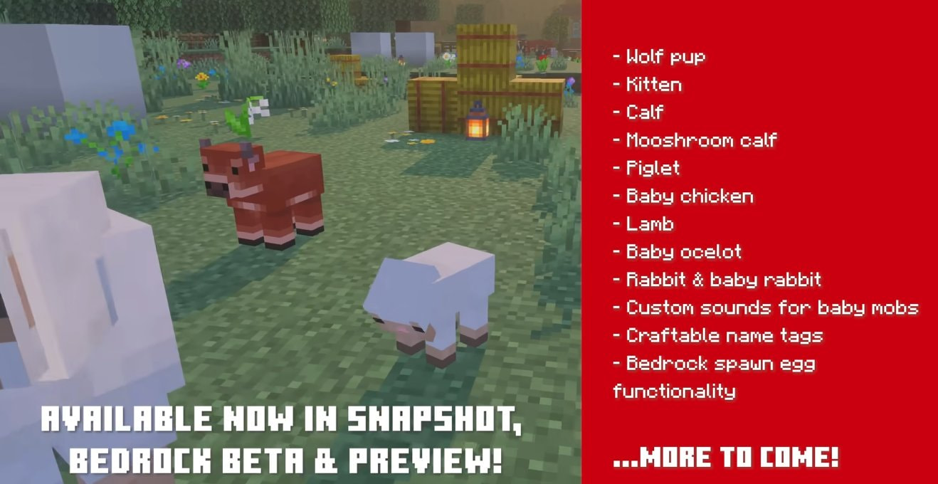 First game drop for 2026 has just released its first snapshot & beta/preview changing baby mobs & bunnies (sooooooo cute agggghhh) and adding a crafting recipe of one paper and one of any metal nugget for the name tag
