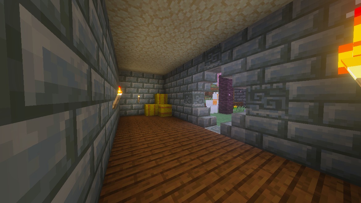 there are some bottom level doors that are decorative but can be turned into basement rooms at a later date if necessary. Maybe for storage because I need to remove my chests from view.