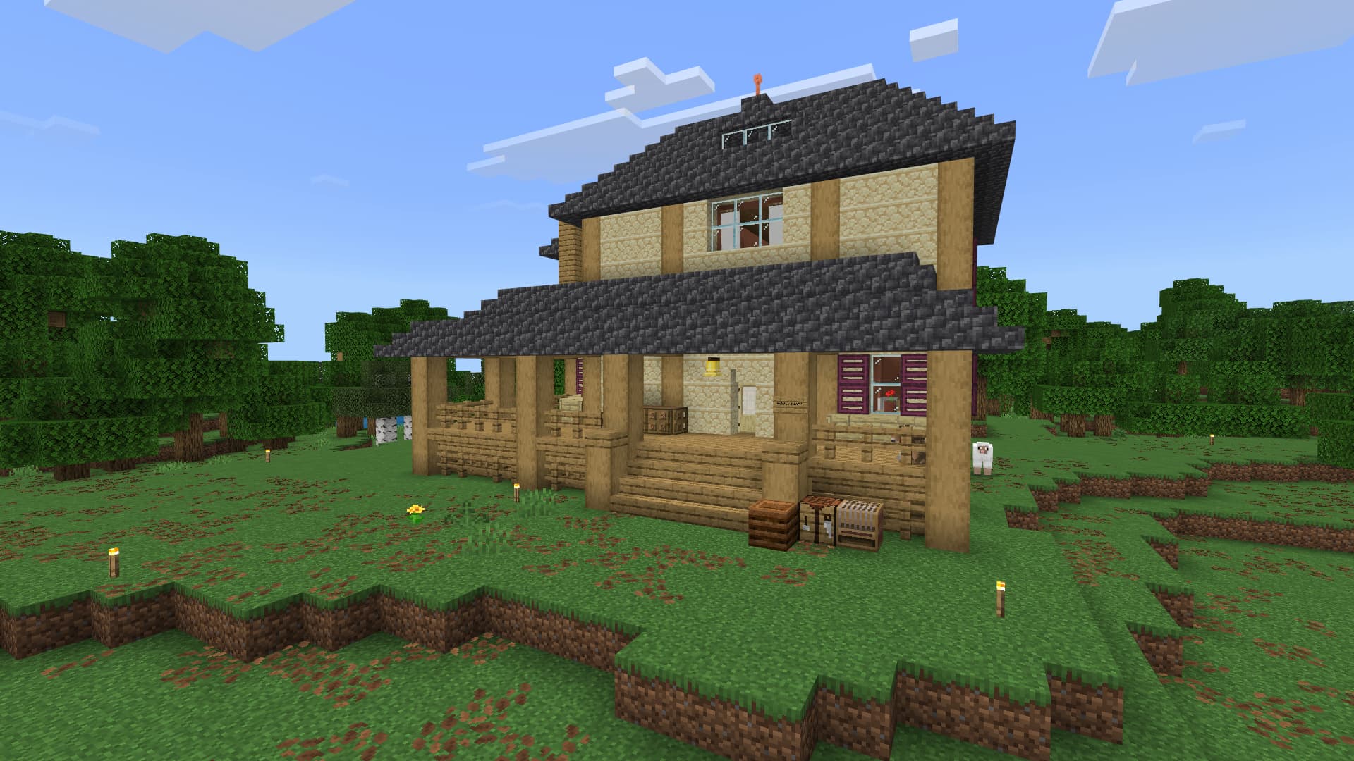 The house is done! Well almost, just little bits and stuff where I’m a little light in that specific resource (I’ve died like 10 times trying to get Crimson trapdoors for the upstairs windows!!!) It’s looking good! Come on over if you want to check it out, the door is always open.