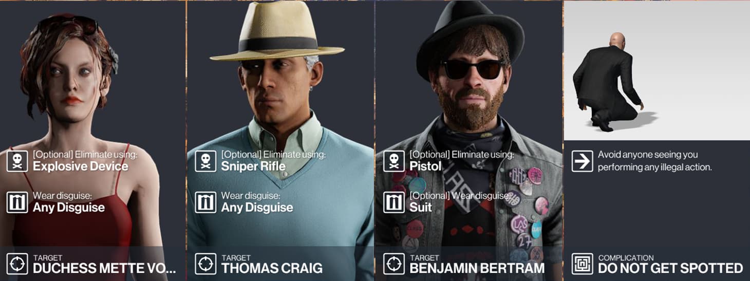 Briefing: These three have quite the bombshell and plan to sell an explosive expose for a big profit. With said profit, they dream of going everywhere. Why donât you help grant their wishes, 47?