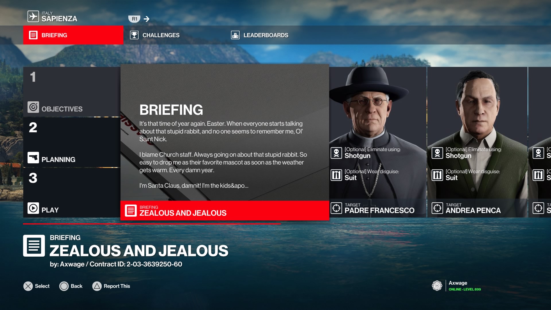 Brief description: Santa is jealous of the Easter bunny, and blames members of the church. Roleplay as Santa and make some very, very questionable choices by killing Sapienza’s religious devotees. Then, just like at Christmas, vanish without a trace.
