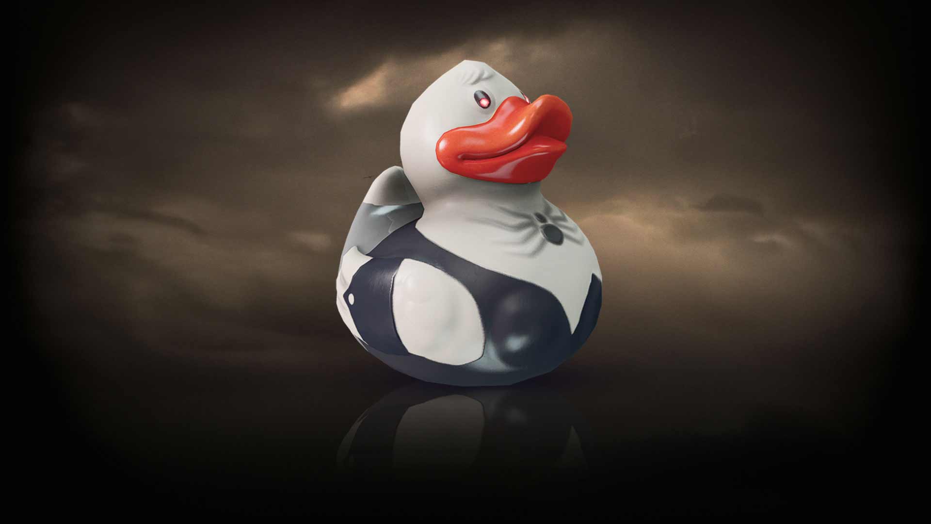 Yellow rubber duck? Nah. A duck wearing a yellow tracksuit? Oh yeah!