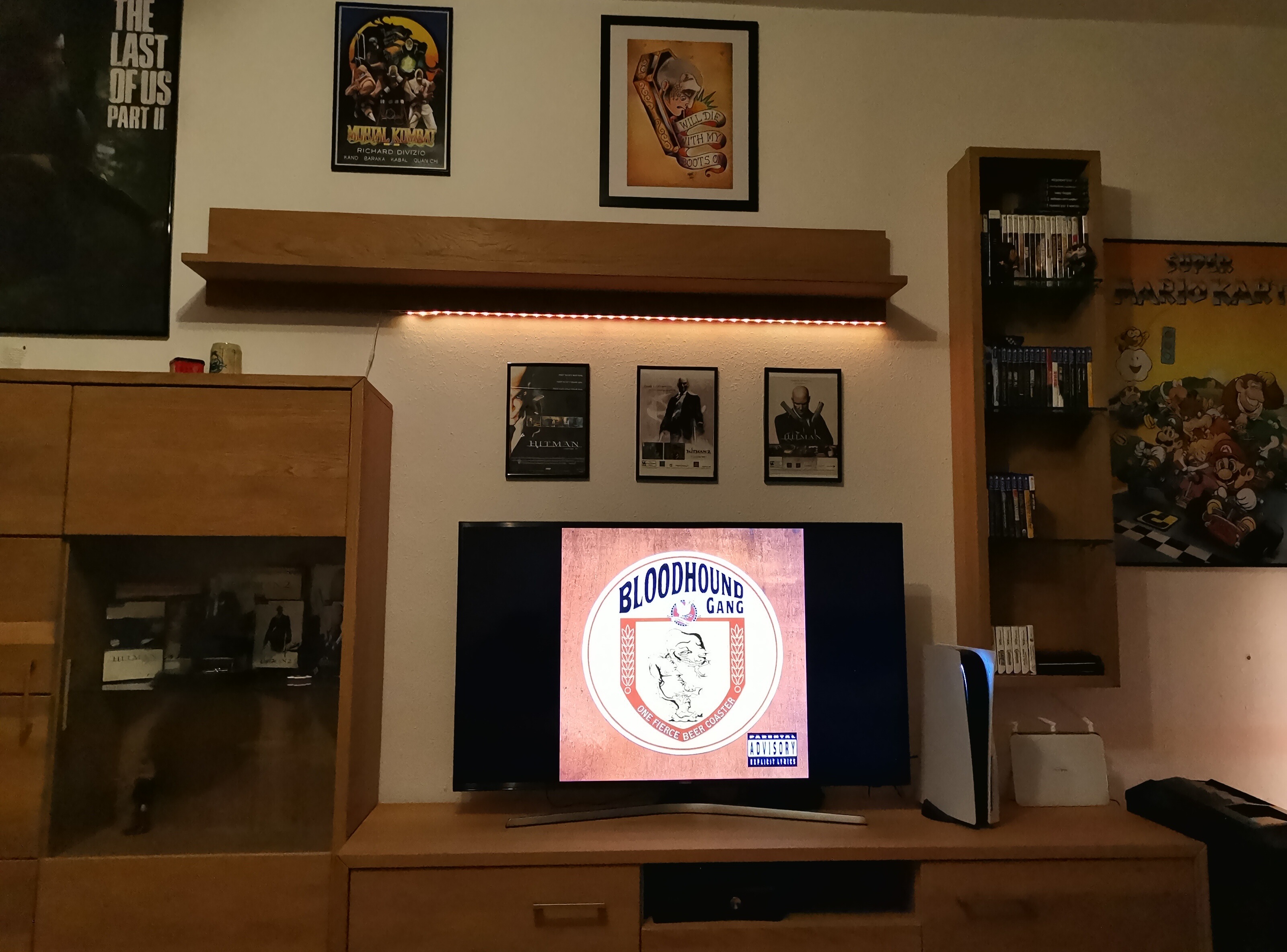 great setup Mini! It’s all about the experience and making it work for you! Cool film memorabilia and I think your PS controller holder is awesome! Enjoy the new TV soon