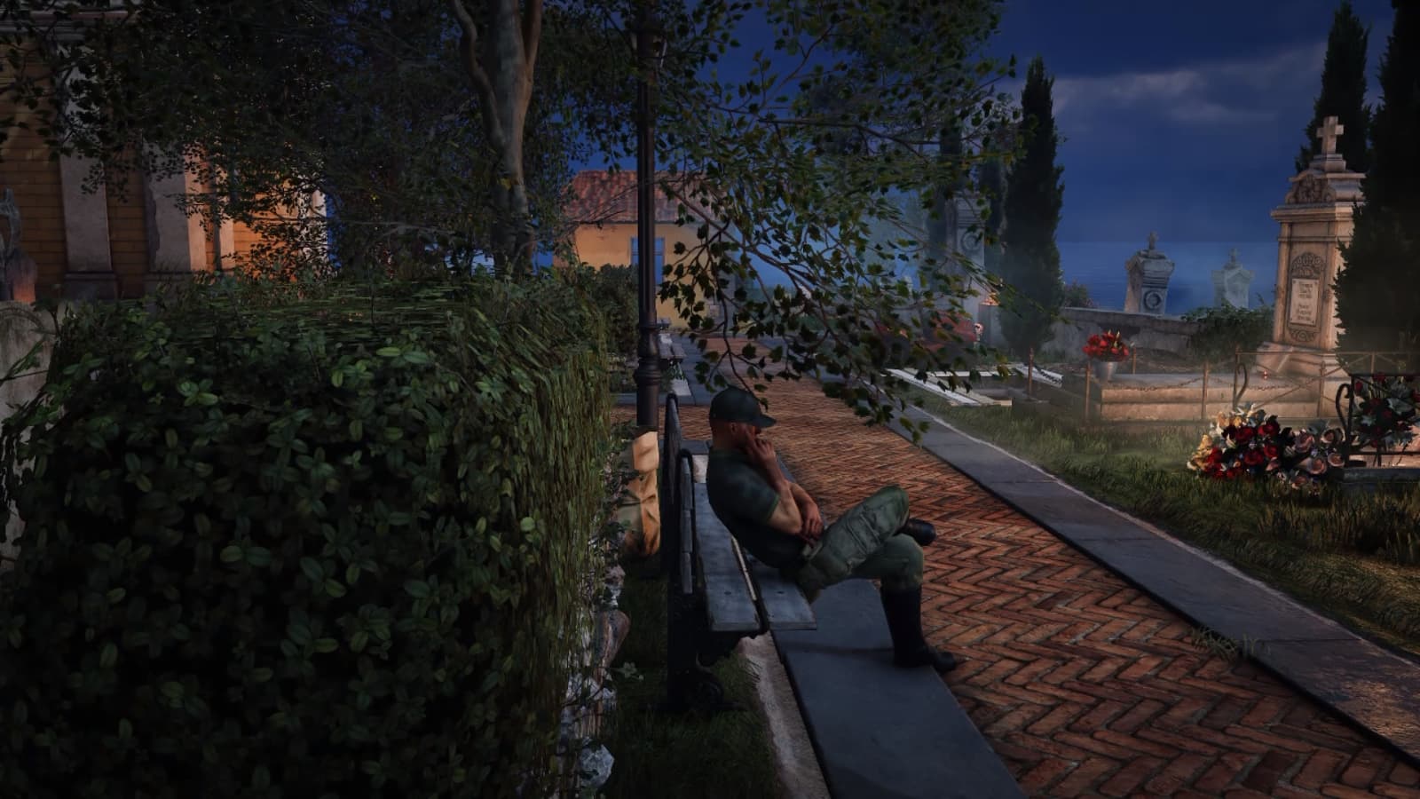 But, so far, I haven’t figured out a way to exit the mission afterward changing back into the suit. There’s not enough equipment slots for a second flash bang to get to the cable car. I could probably collect enough weapons to have the guards distracted taking them to the weapons crate. But at this point, I didn’t think it was worth the risk when I could just simply exit with Dexter’s robes.