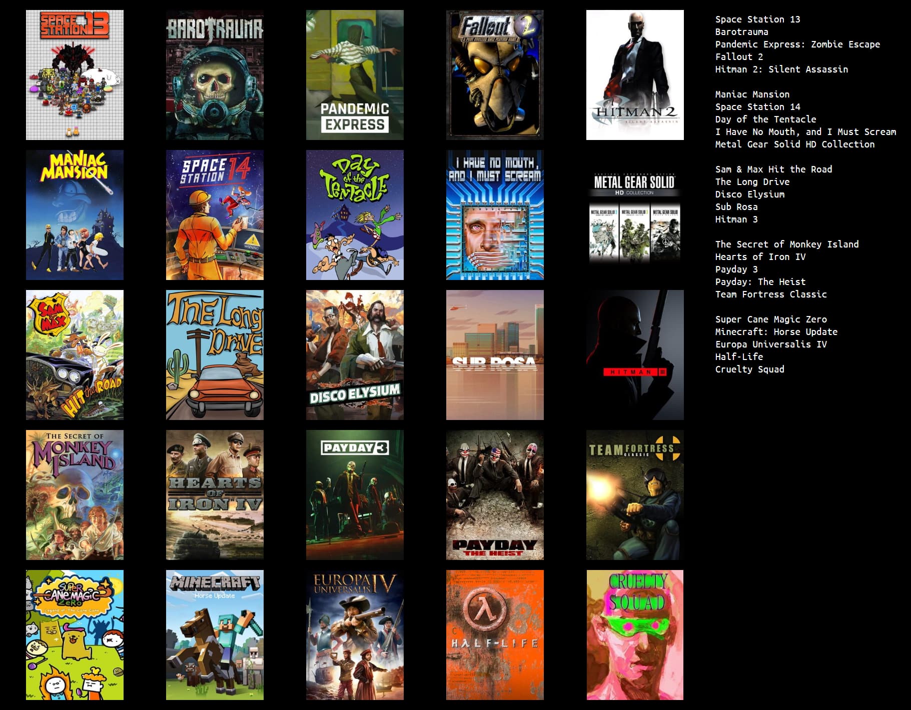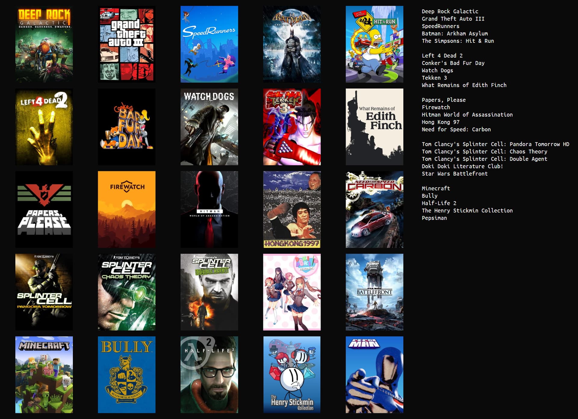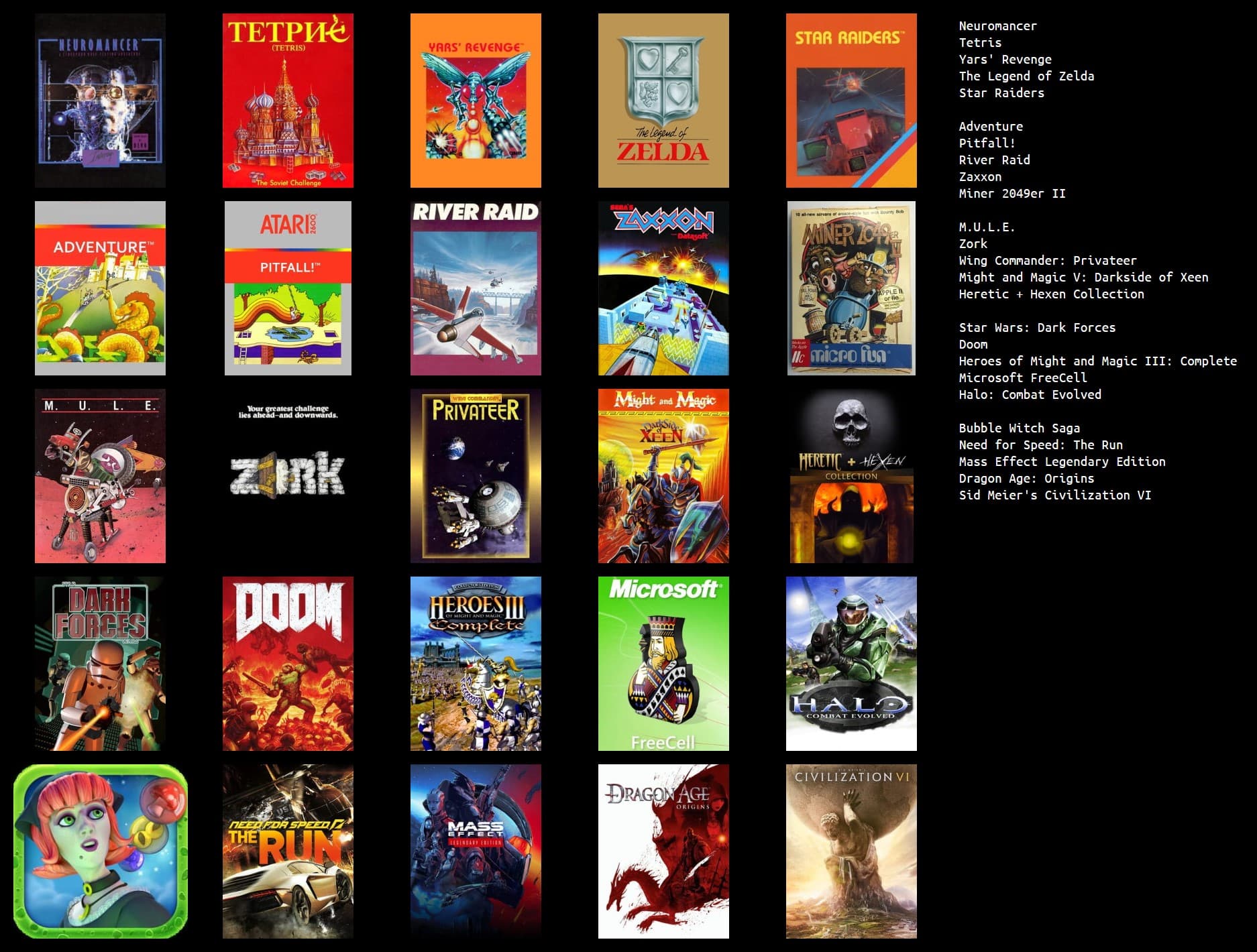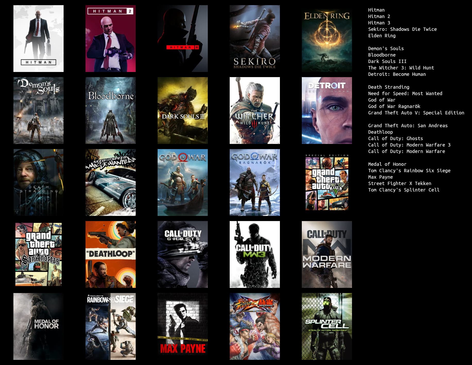 The most influencial games I’ve played throughout my life. Its in chronological order. Upper row is me discovering my favorite franchises as a kid. Second row is the golden age of PS2. Third row is my Wii era followed up by the ambitious ps3 with some of my favorite sequels and discovering the Far Cry franchise. 4th row is me on PS4 diving deeper into multiplayer and Hitman. Last row is the second coming of the golden age. Those games are my favorites of the one’s Ive played in recent years.