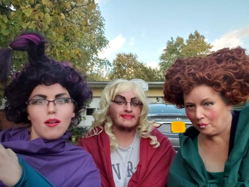My sister, me and my mom handing out candy (and traumatizing a few kids) as the Sanderson sisters.