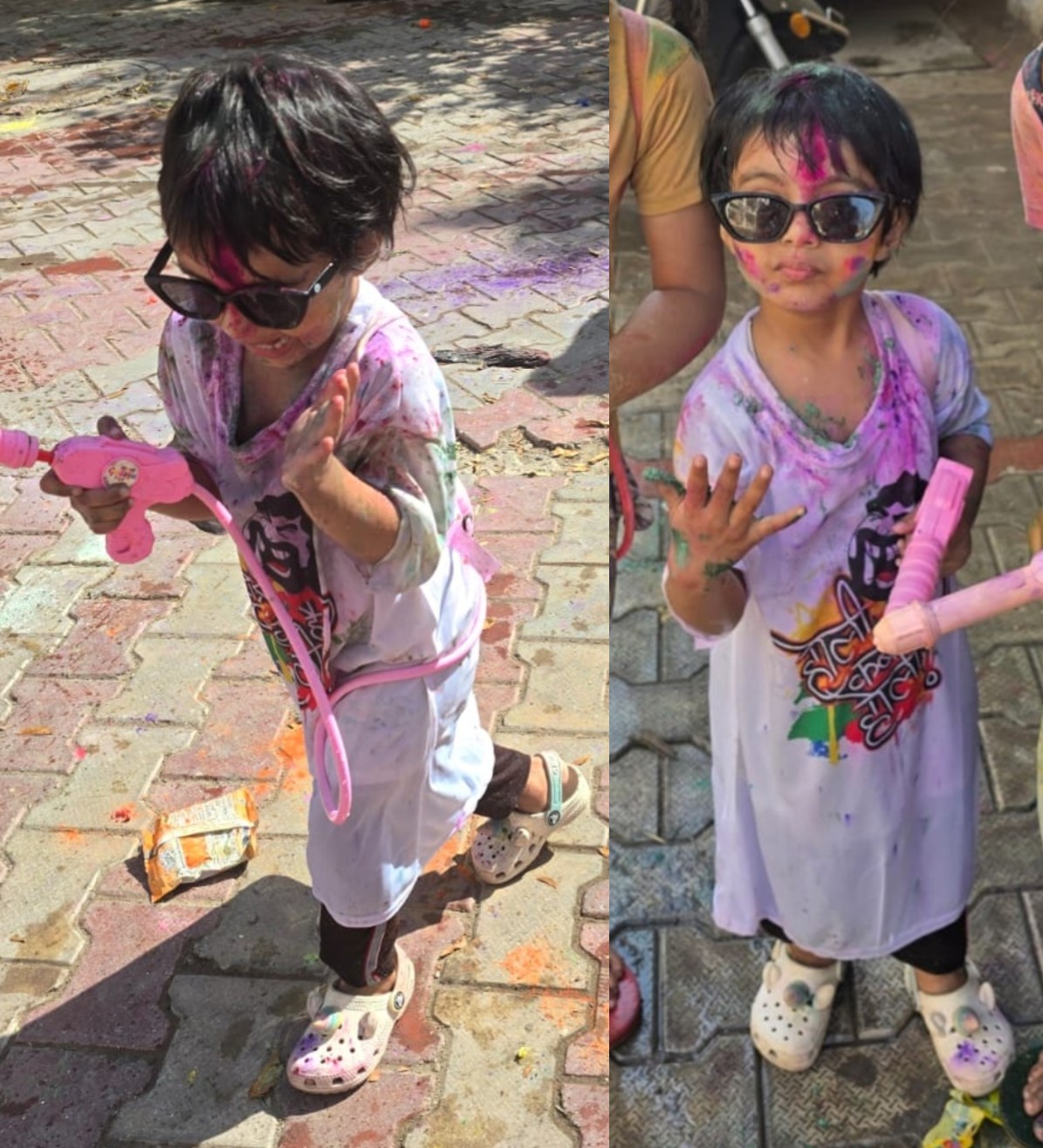 And my daughter’s first Holi today (a festival of colors), last year she was having cold so missed.