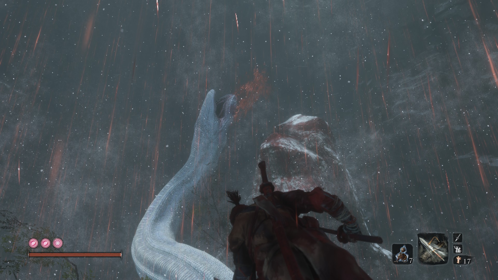 I killed the great serpent, i dont know if that has repercussions later but i wanted the fucker dead and he is now dead. Furthermore i killed a second snake eyes and long-arm centipede giraffe in gunfort and got the divine abduction shinobi prosthethic. Iam also planning to kill the two optional bosses in hidden forest, Tokuriji the glutton and headless before moving on from that place. With that being said I’ve got some questions about quests. So far I’ve found 4